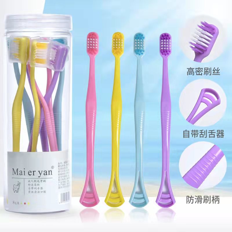 刮舌苔牙刷瓶装桶装旅销礼品快手抖音竹炭软毛倒插会销礼品两用