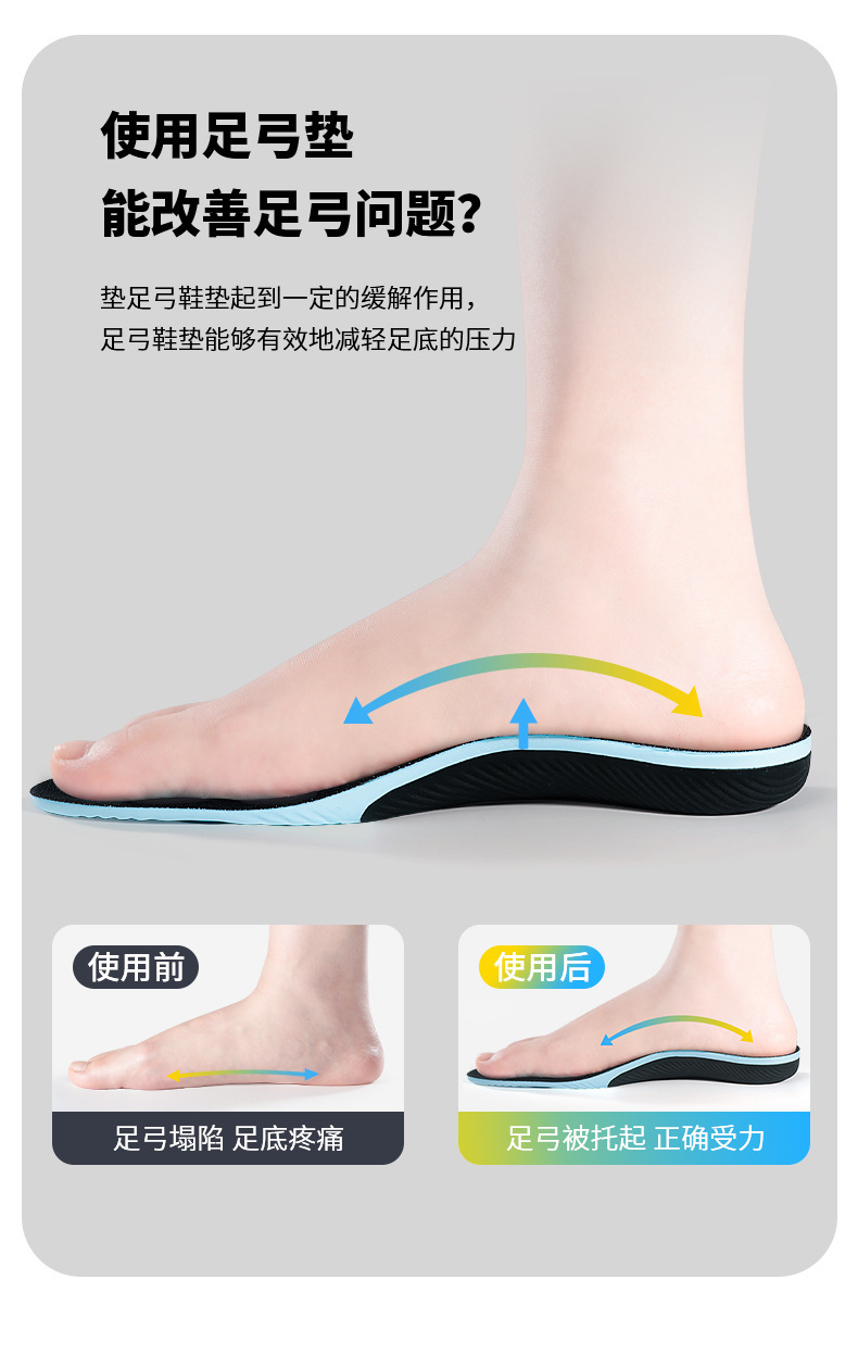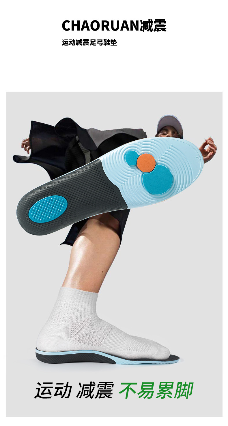 扁平足矫正足弓支撑鞋垫高弹减震抗扭运动鞋垫足底增高吸汗透气夏