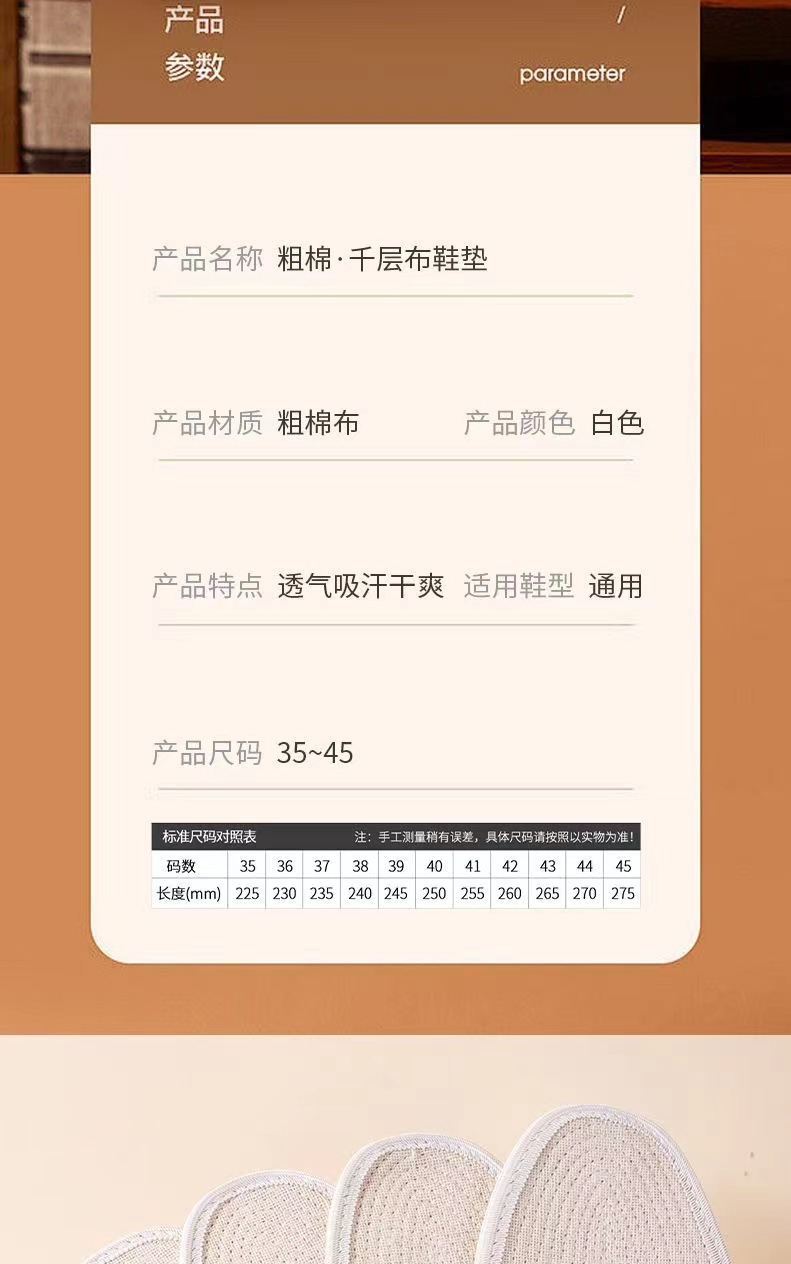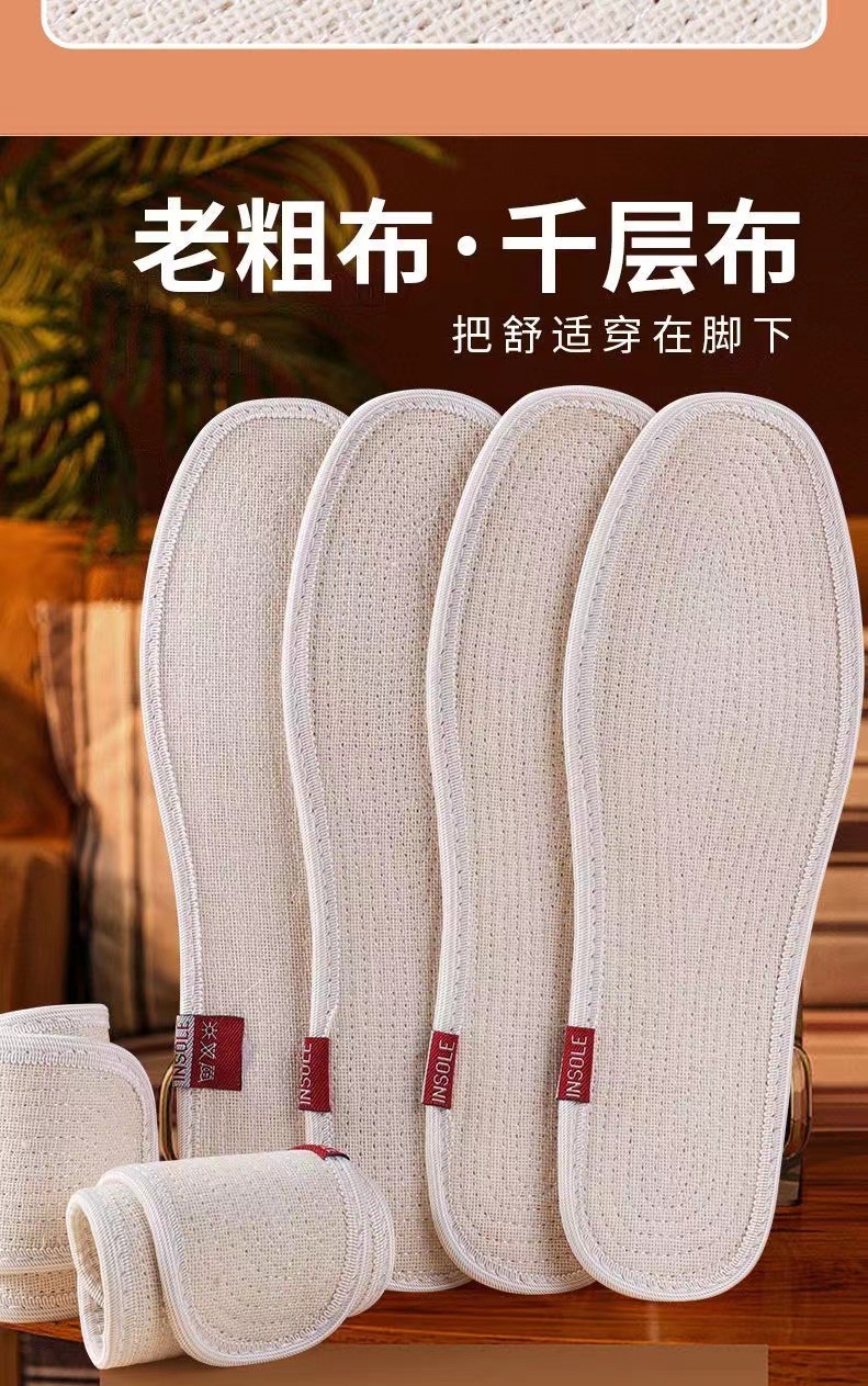 棉布老式加厚粗布鞋垫子透气吸汗防臭汗脚千层布男女除臭手工棉麻