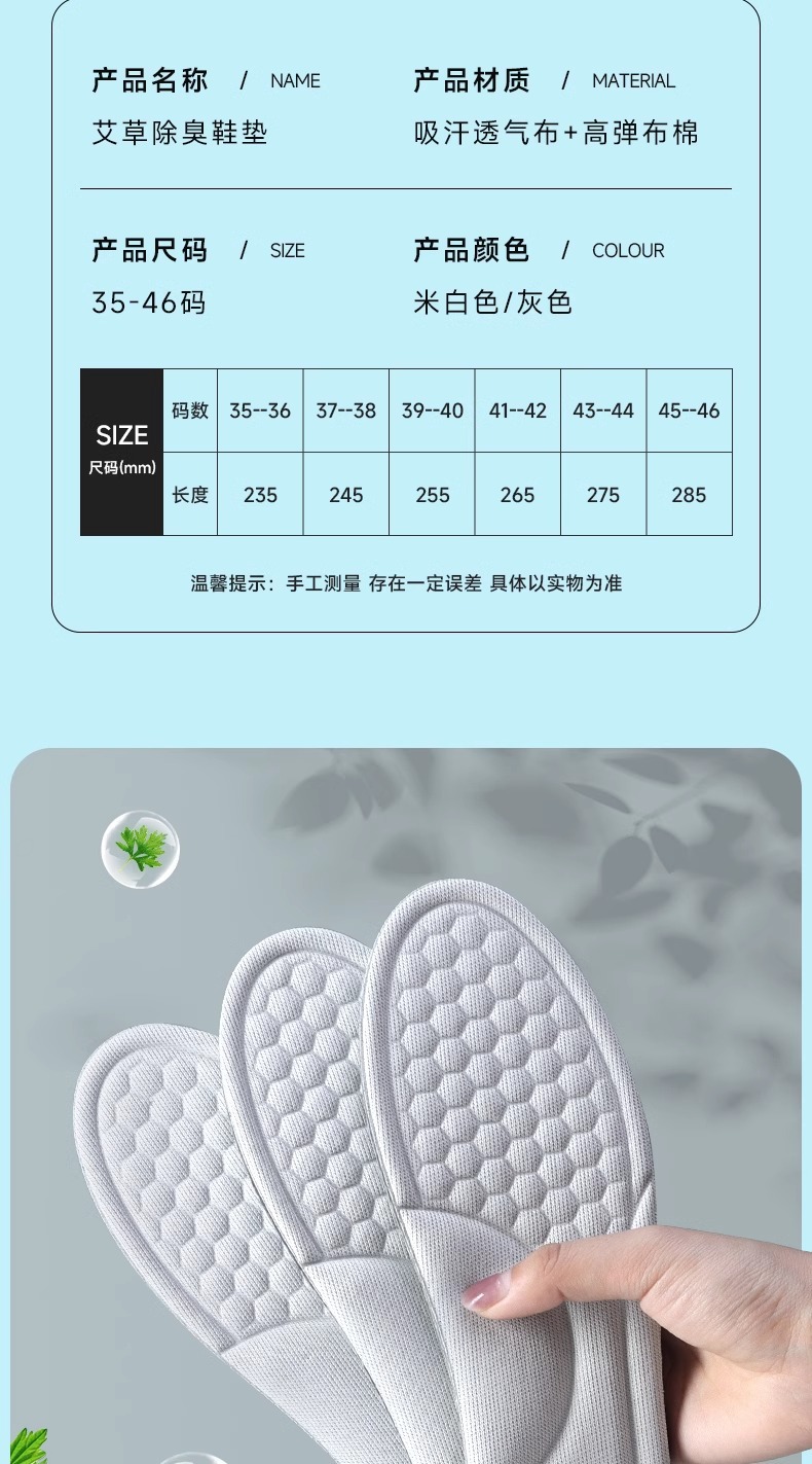 艾草舒适增高鞋垫男士隐形内增高垫女运动减震高弹软底防臭透气夏