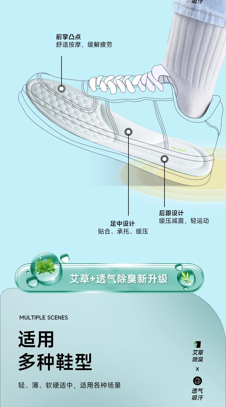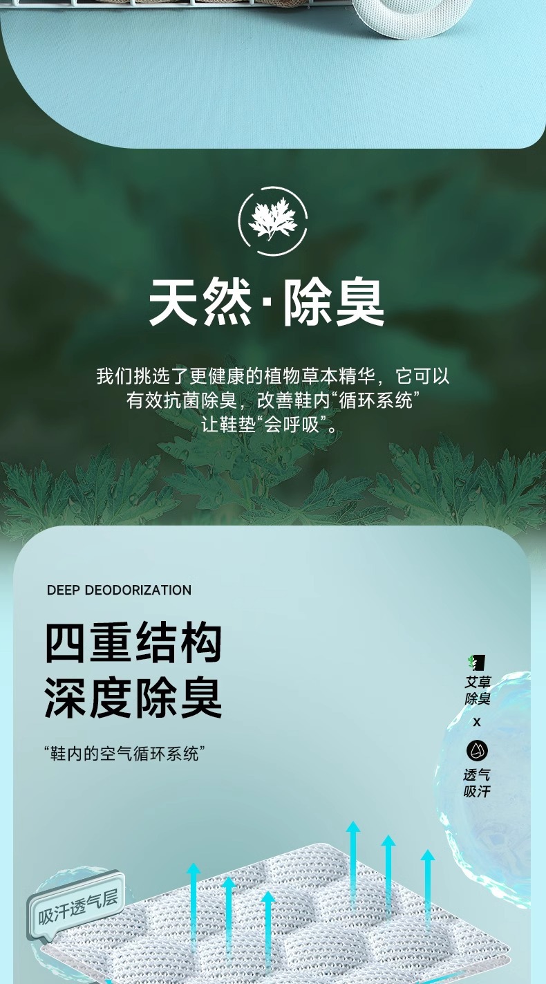 步云鞋垫防臭男女吸汗除臭留香鞋垫踩屎感久站不累透气减震鞋垫