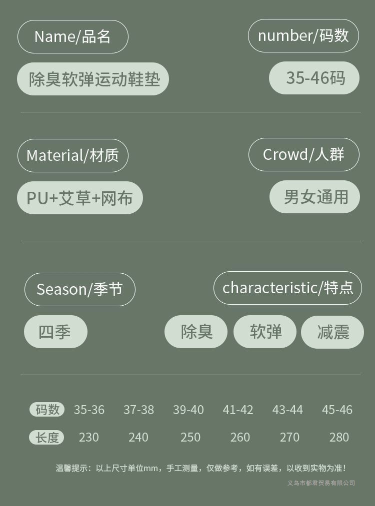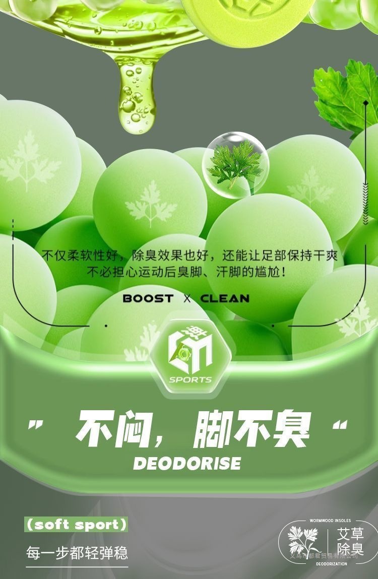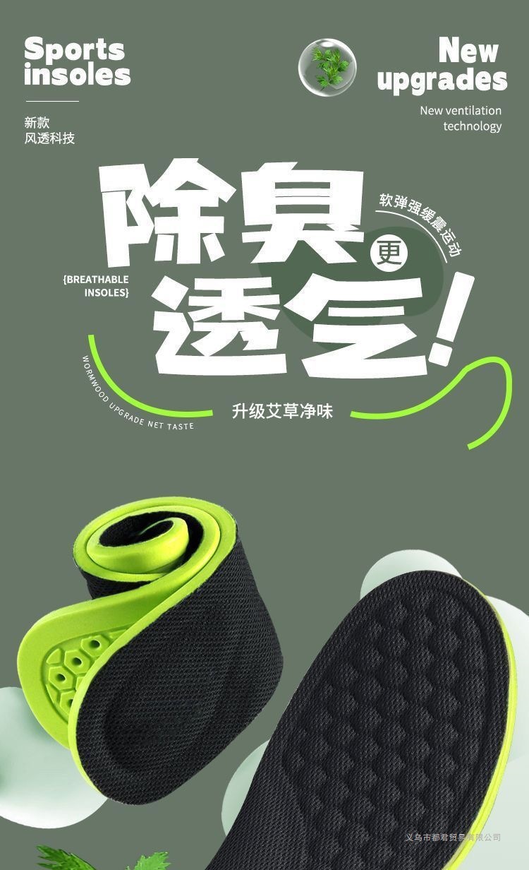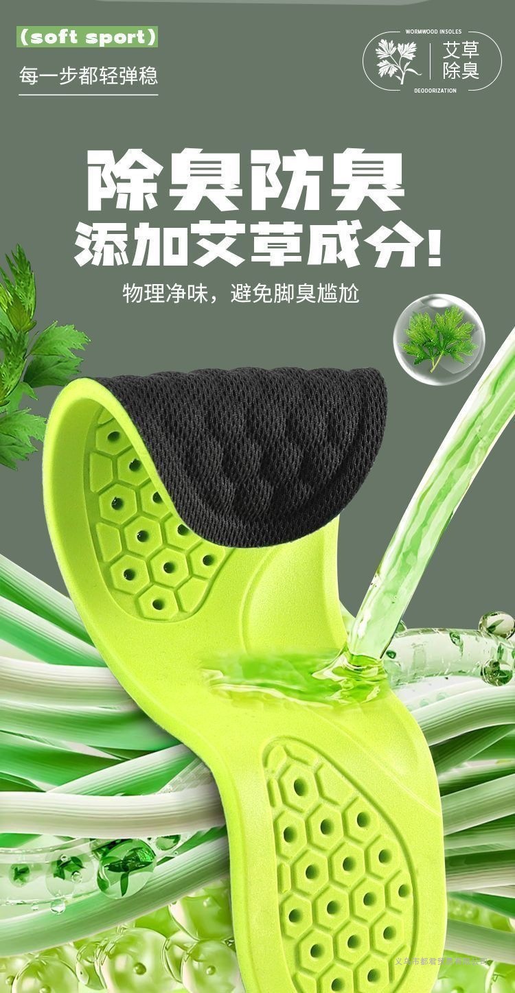 艾草除臭运动鞋垫吸汗透气艾草除臭软弹舒适运动减震男女加绒鞋垫