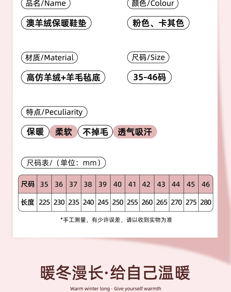 保暖鞋垫秋冬季加绒加厚男女款澳羊羔绒吸汗防臭棉鞋垫