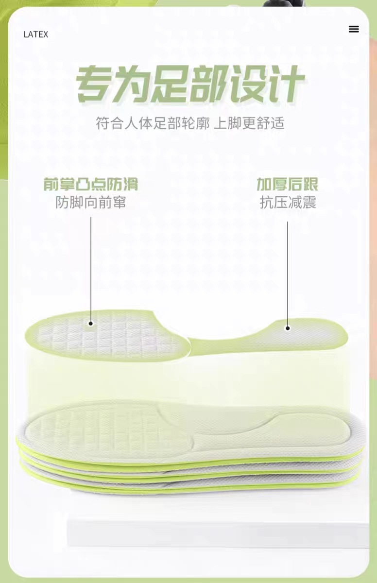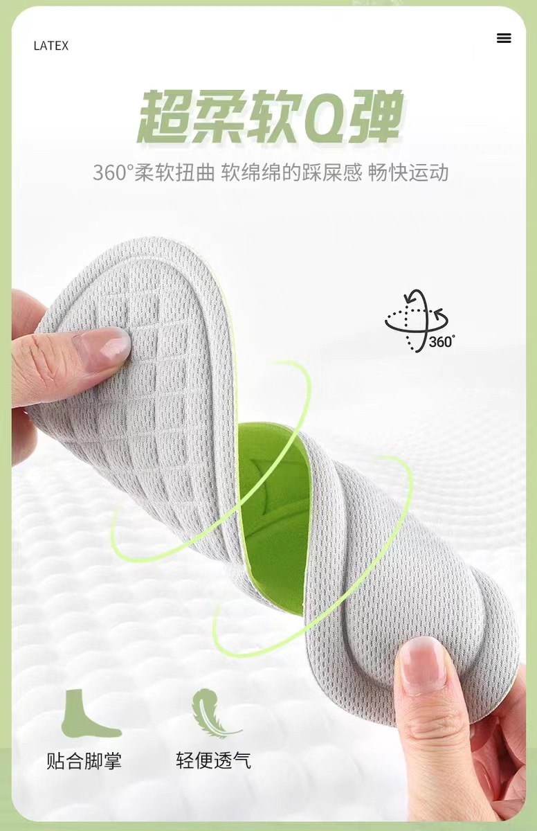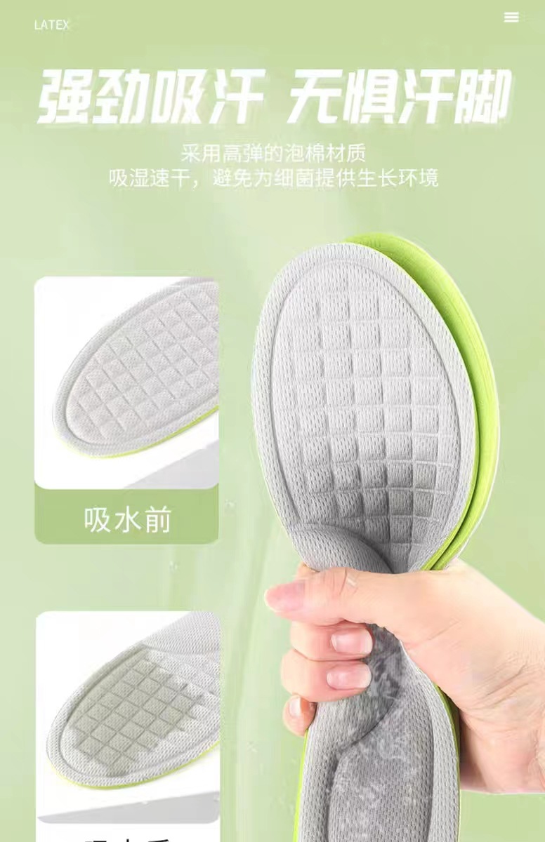 踩屎感艾草运动鞋垫减震透气吸汗鞋配件防臭软底乳胶爆米花鞋垫男