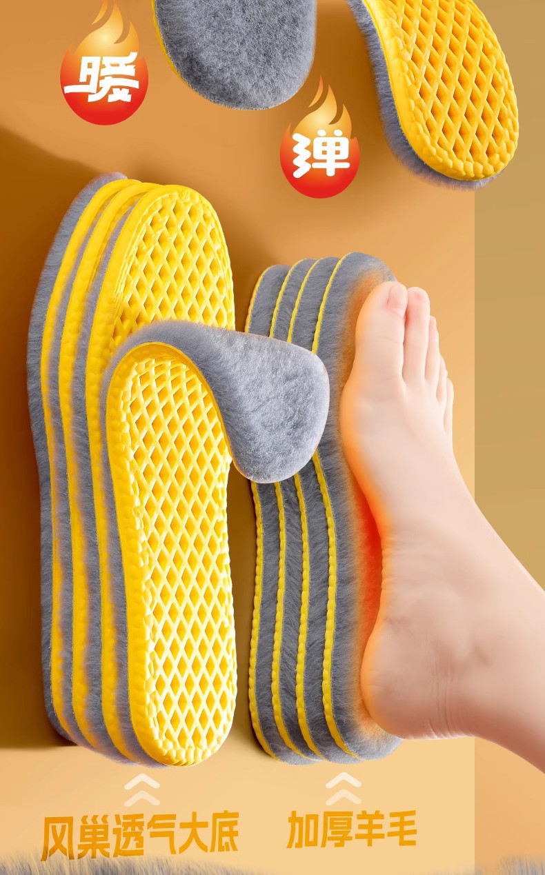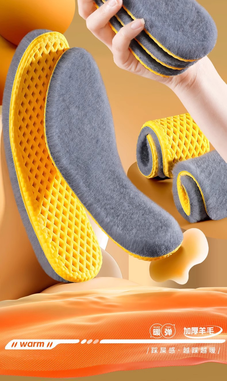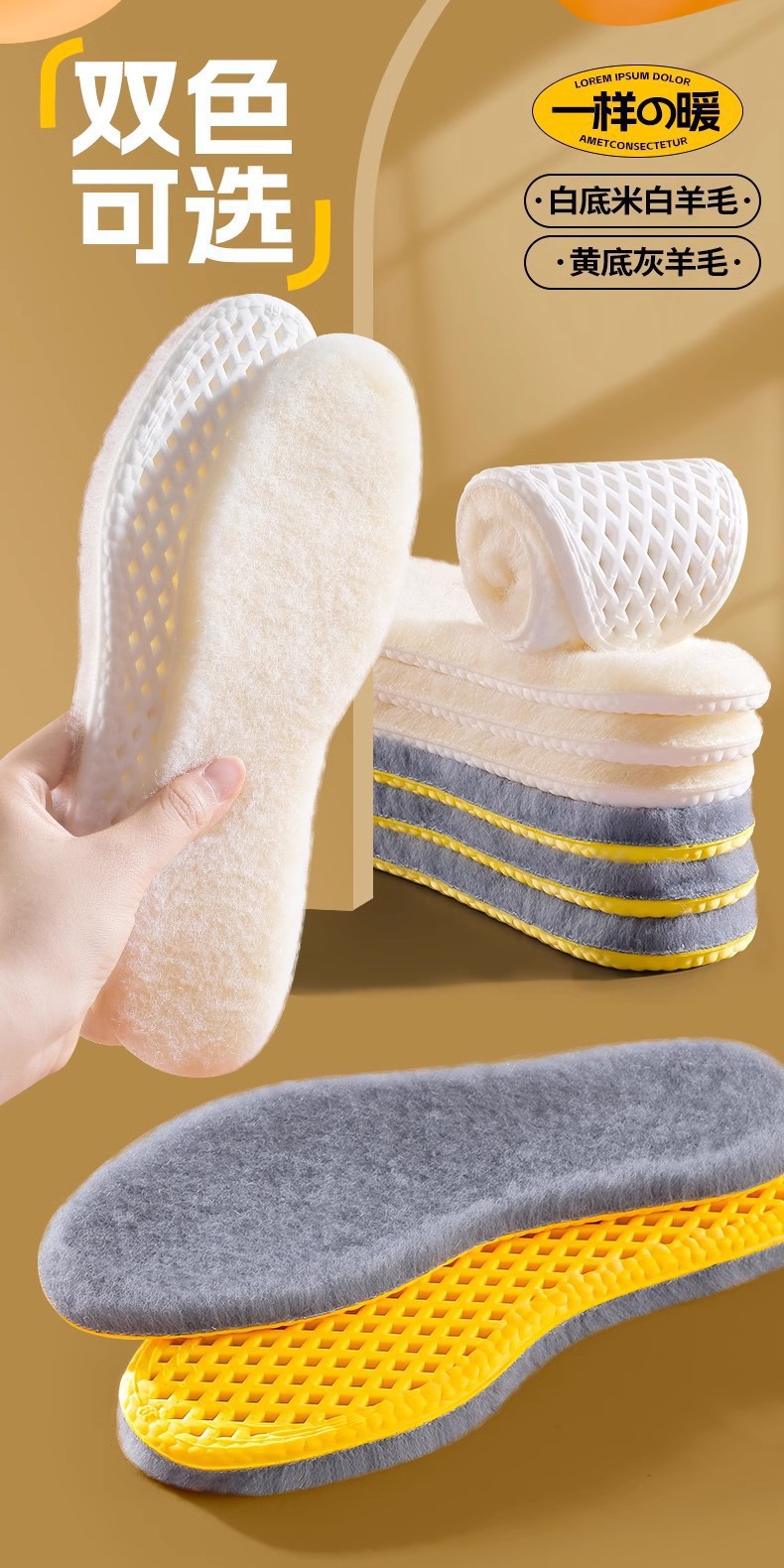 冬季保暖加绒超软鞋垫男女同款防滑吸汗透气除臭防臭加厚羊毛绒垫