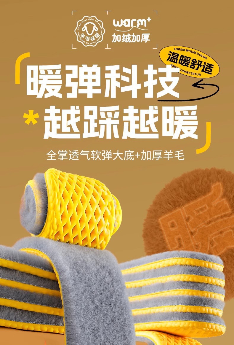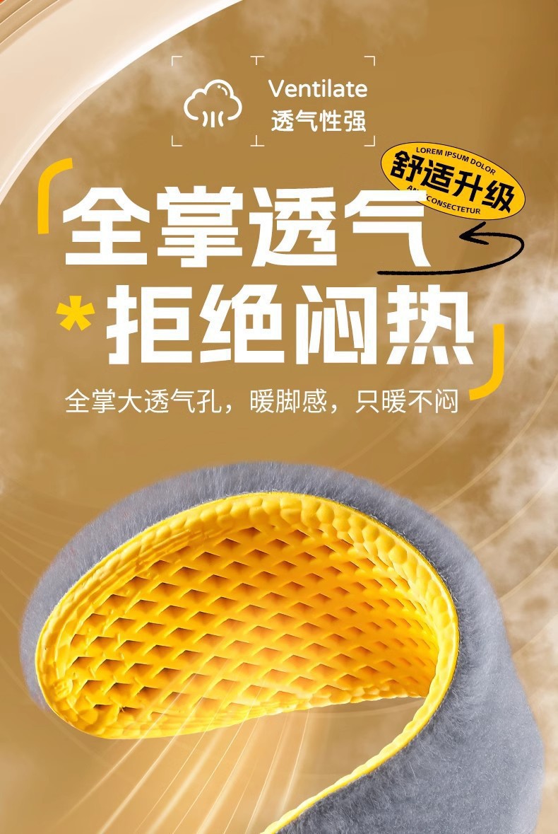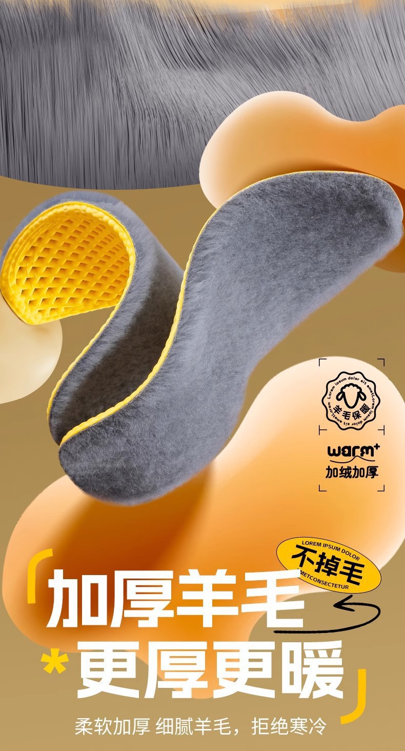 冬季保暖加绒超软鞋垫男女同款防滑吸汗透气除臭防臭加厚羊毛绒垫