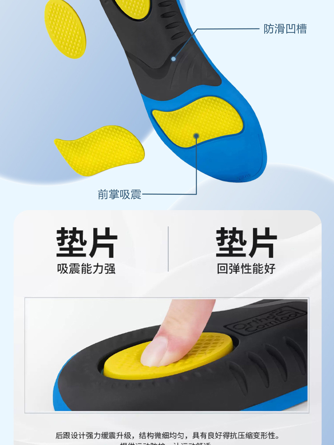 运动鞋垫军训减震男吸汗鞋垫扁平足弓全垫足跟鞋垫
