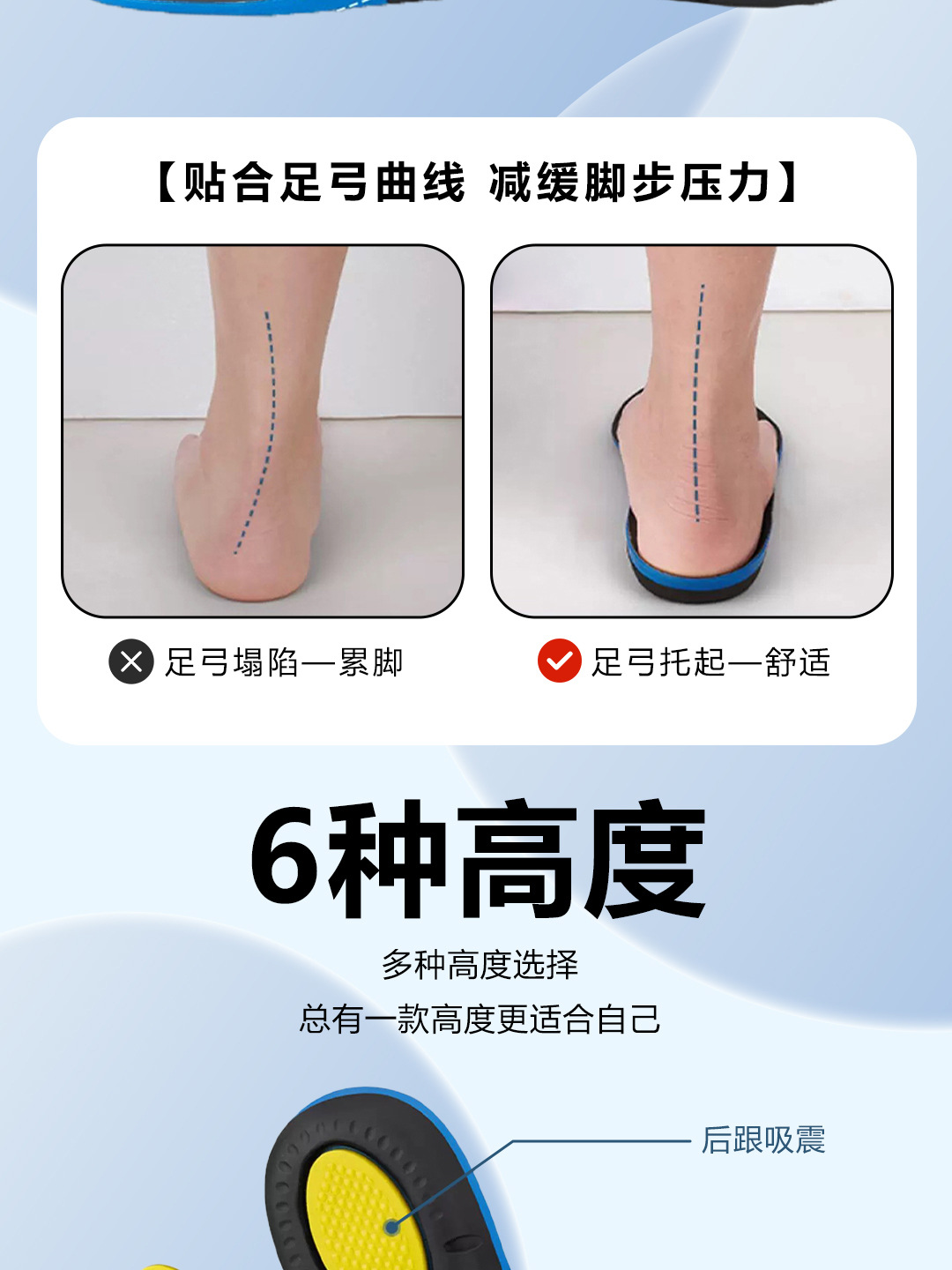鑫养道隐形男女内增高鞋垫Boost足弓支撑软弹半垫eva材质