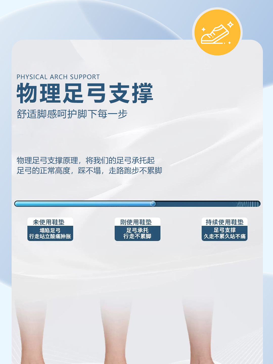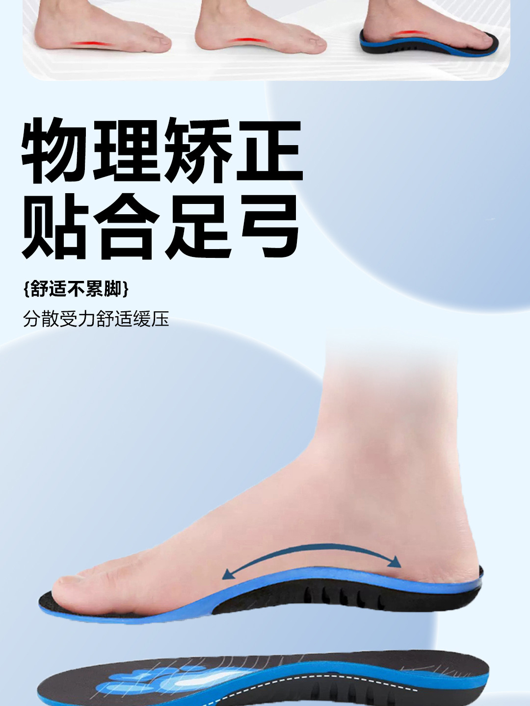 足弓垫扁平足专用鞋垫足弓支撑平底足男士运动减震足外翻腿型专用