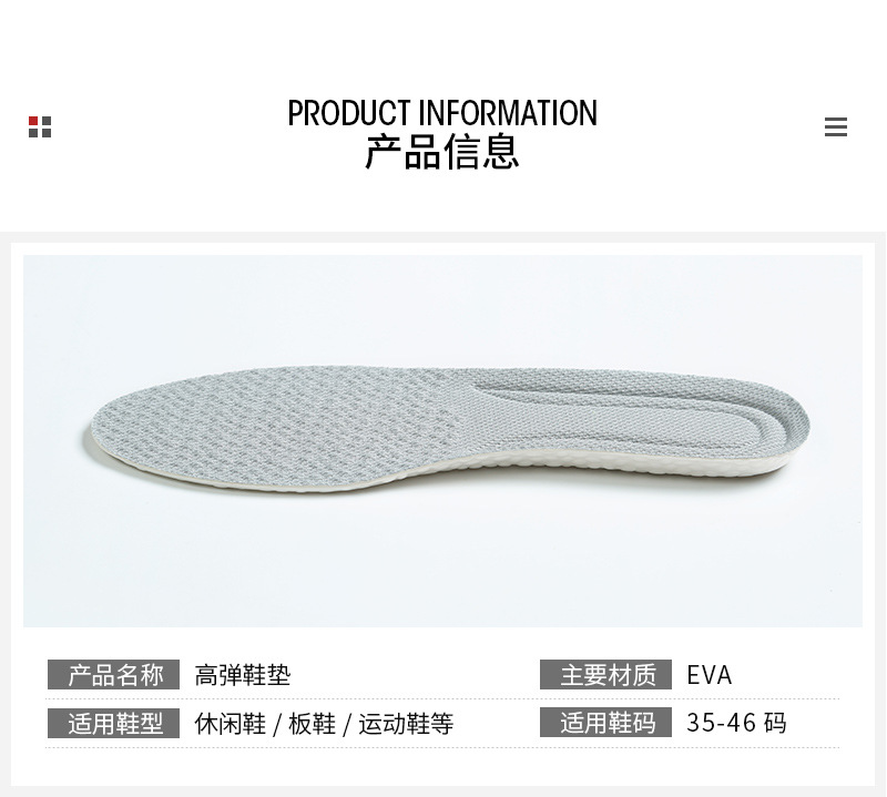 新款EVA轻盈舒适运动鞋垫军训透气吸汗男女椰子运动鞋鞋垫