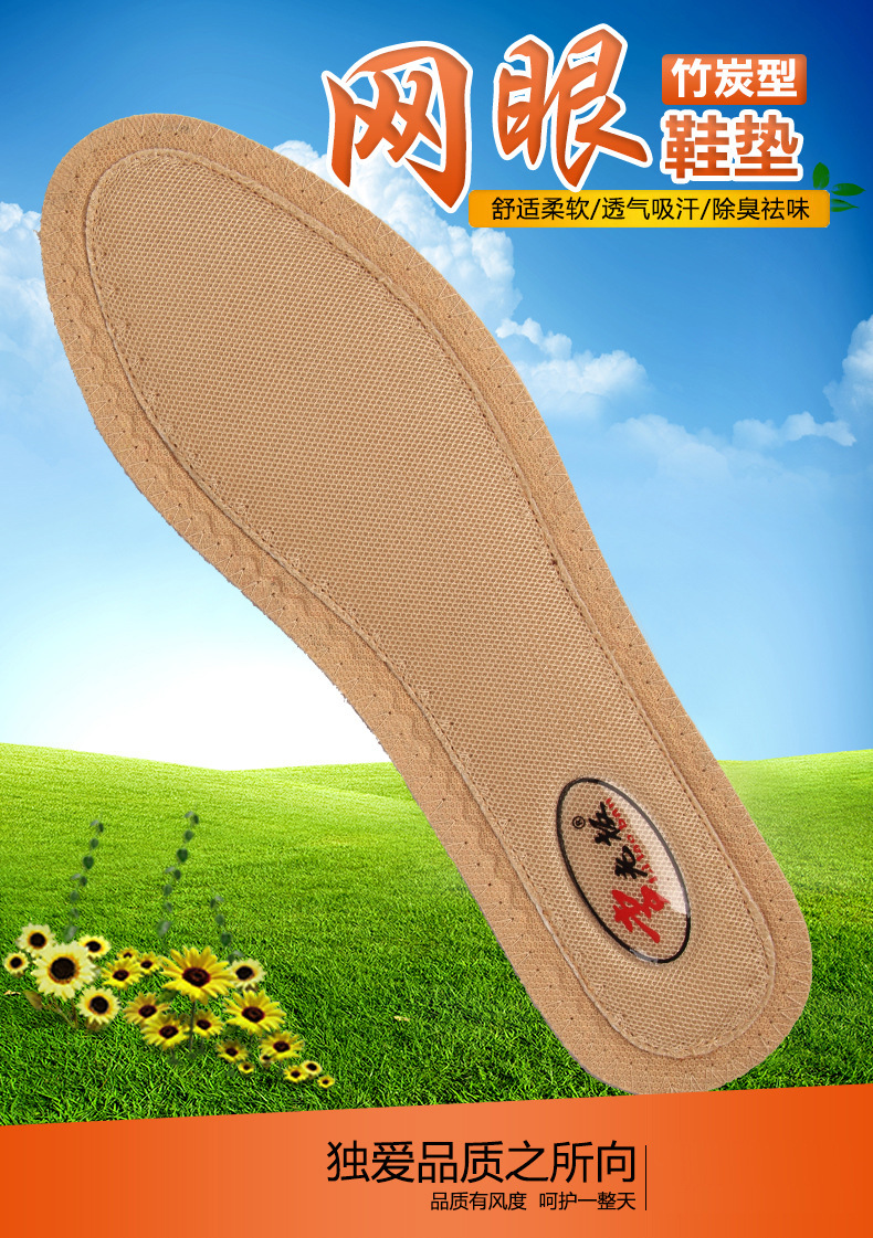 网眼竹炭防臭鞋垫男士芳香除臭吸汗清爽透气鞋垫