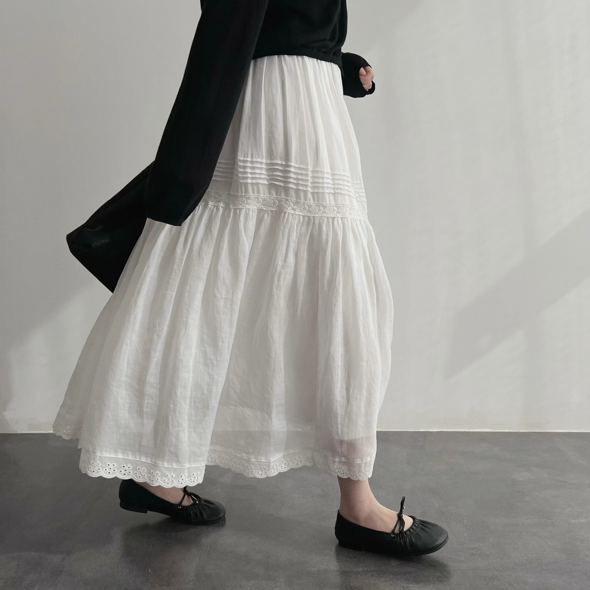 小雏菊的夏天。天然高支酵洗苎麻A字半身裙白裙子2025夏自制