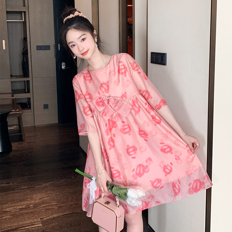 法式小众设计感小个子印花连衣裙女夏新款温柔减龄宽松休闲A字裙