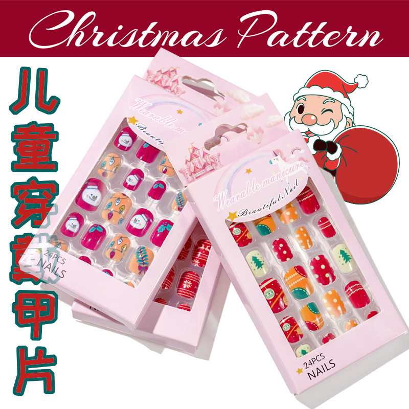 圣诞节儿童甲片短款穿戴式甲片成品可爱美甲儿童贴片美甲假指甲片