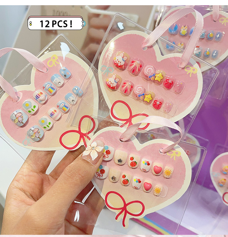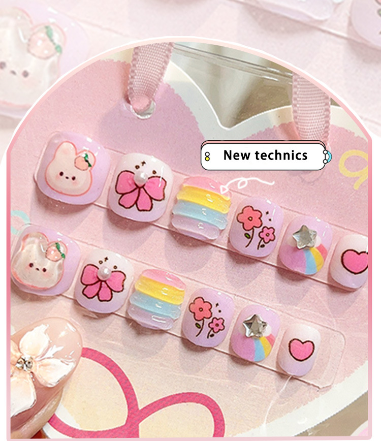 卡皮巴拉儿童指甲贴小女孩卡通穿戴甲片2025新款女童可拆卸美甲贴