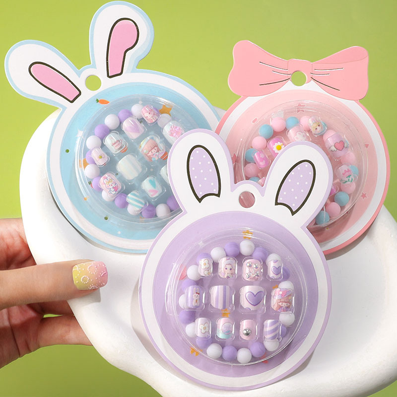 儿童指甲贴片女孩美甲贴甲片自粘果冻胶假指甲成品甲片卡通穿戴甲