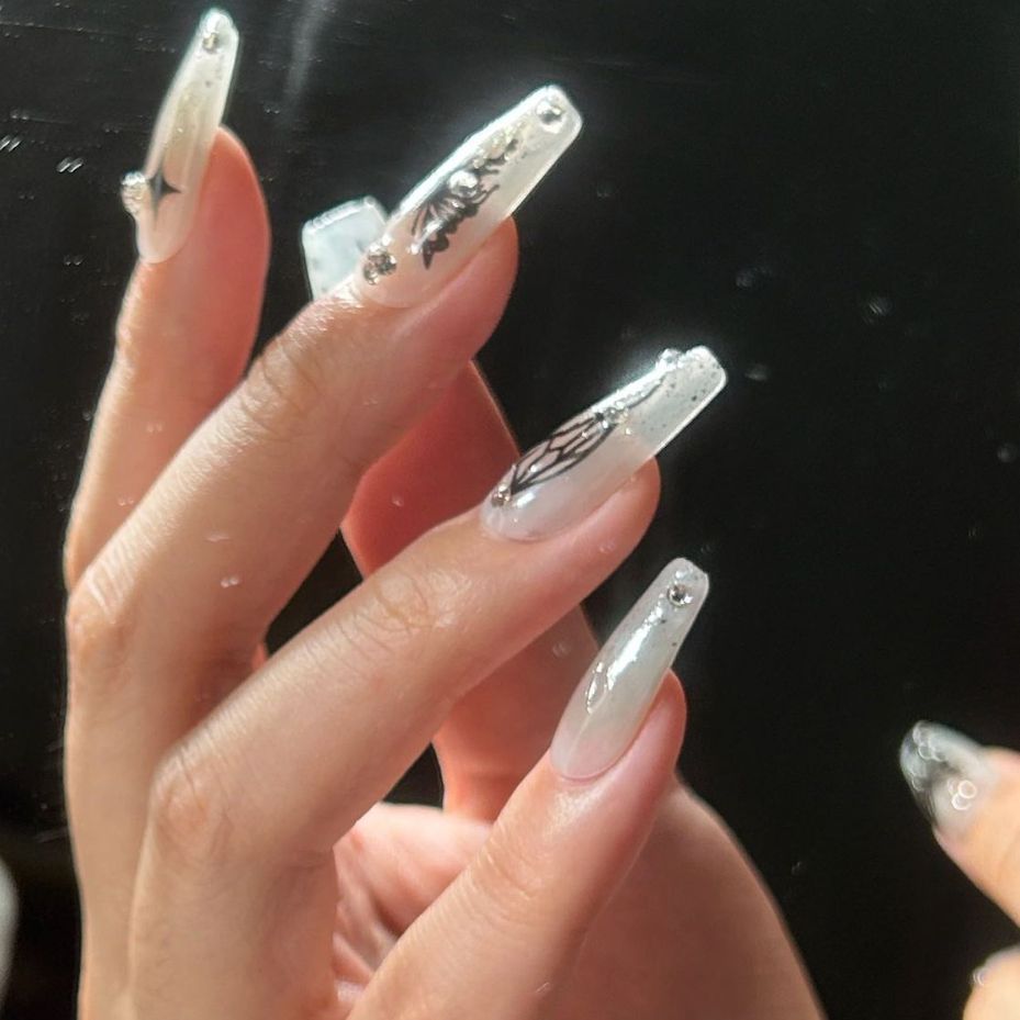 纯手工穿戴甲片美甲指甲贴片爆闪冰透蝴蝶辣妹长款美甲钻