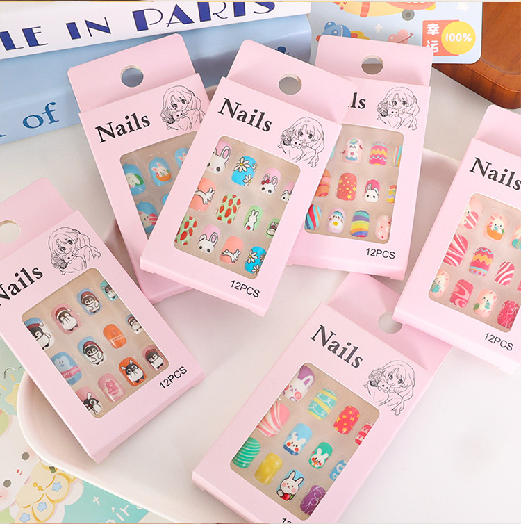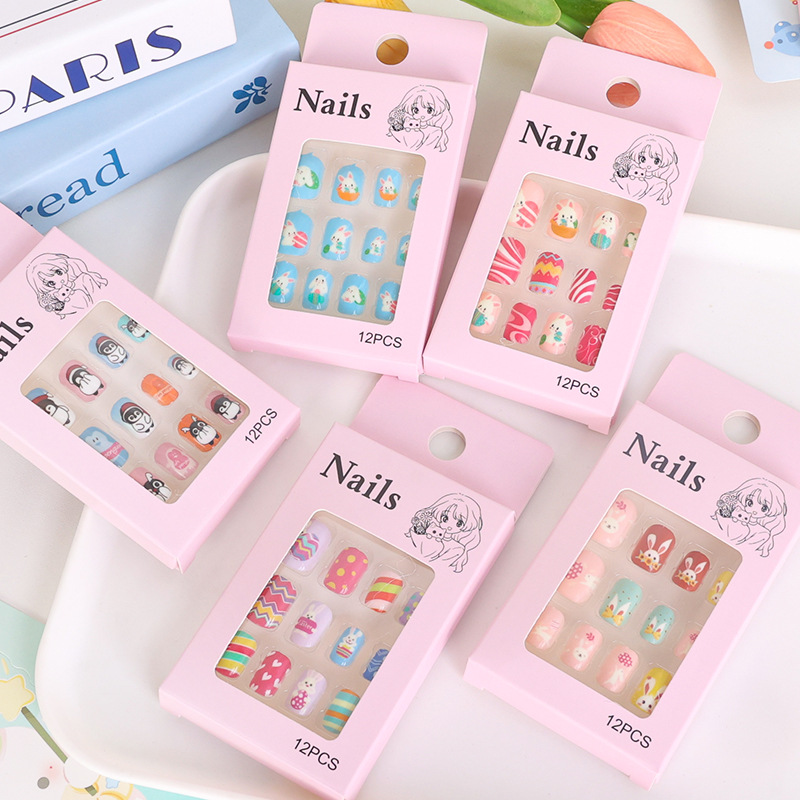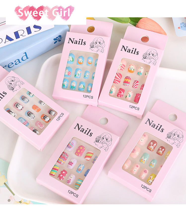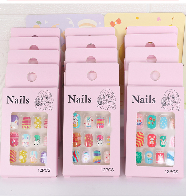 可爱甜美儿童甲片穿戴甲果冻胶指甲片贴片兔子卡通美甲甲片假指甲