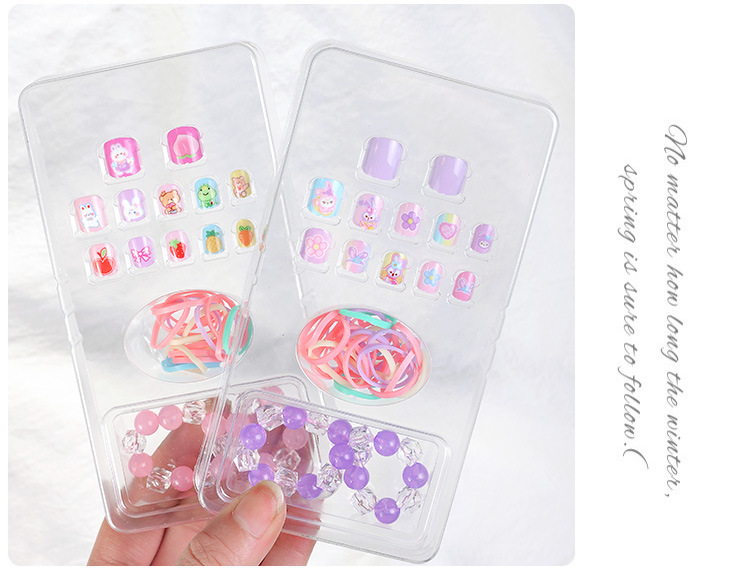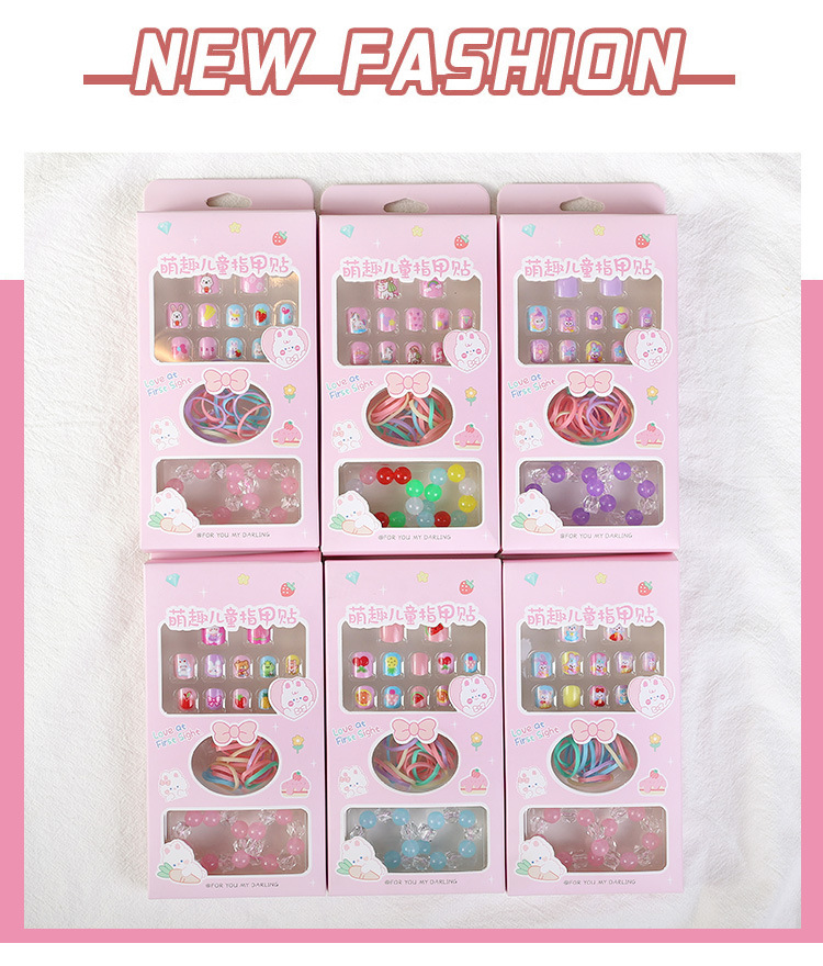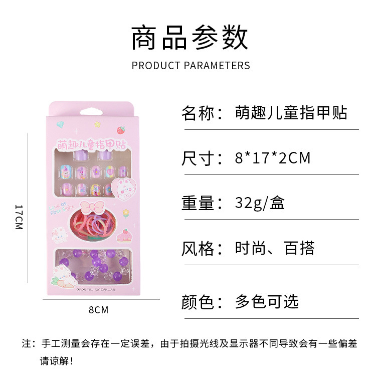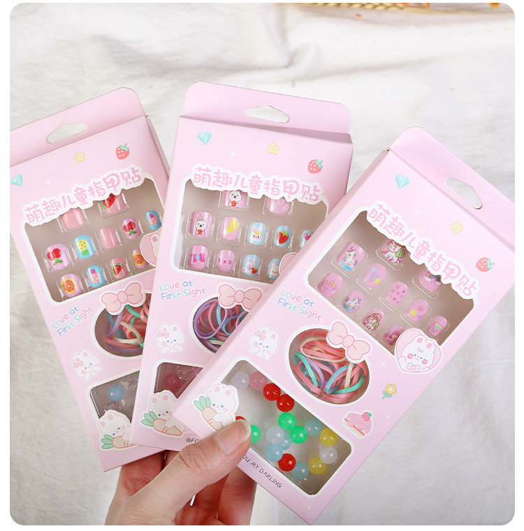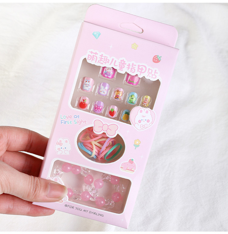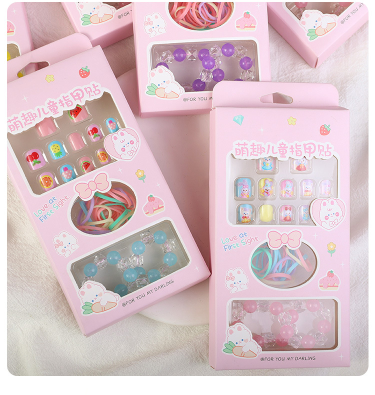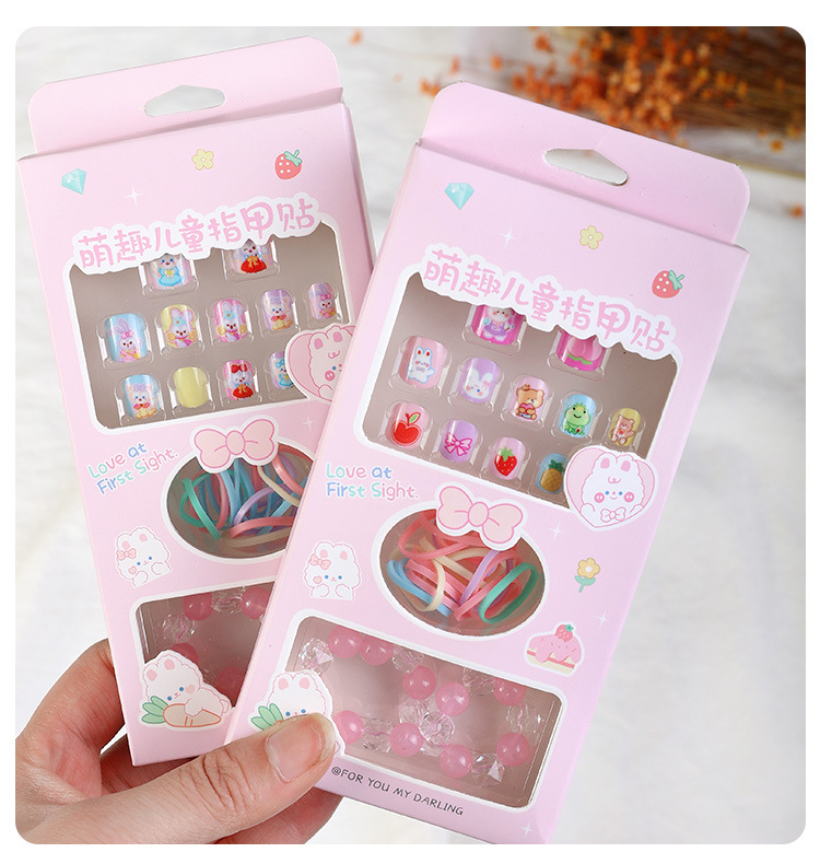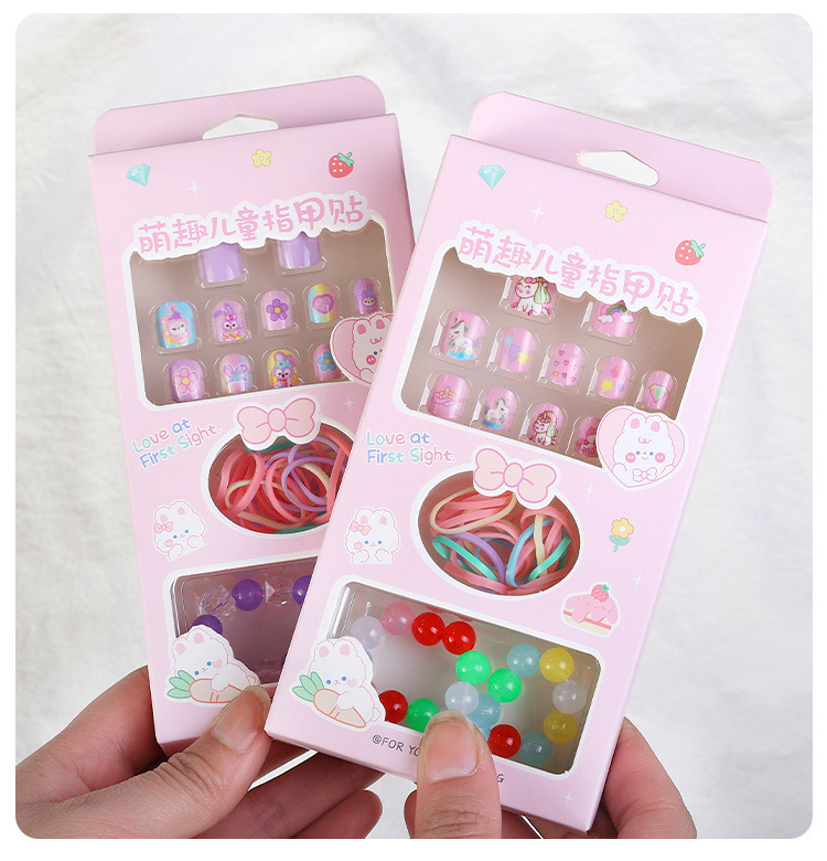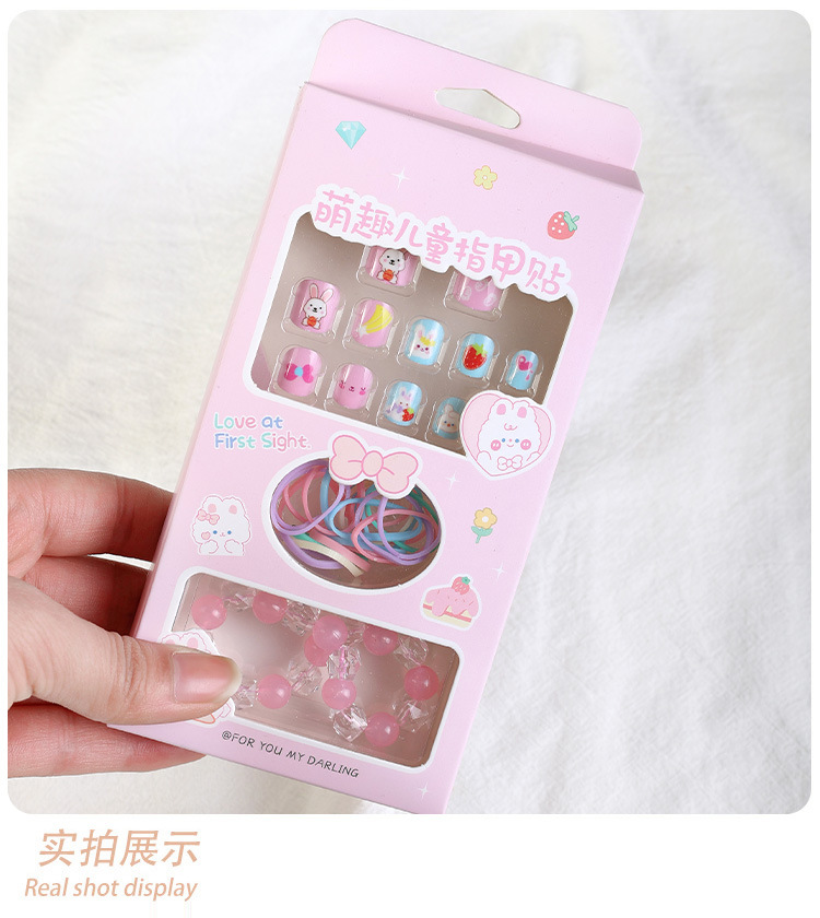 儿童指甲贴美甲贴片穿戴甲新款穿戴式手链橡皮筋卡通玩具套装甲片