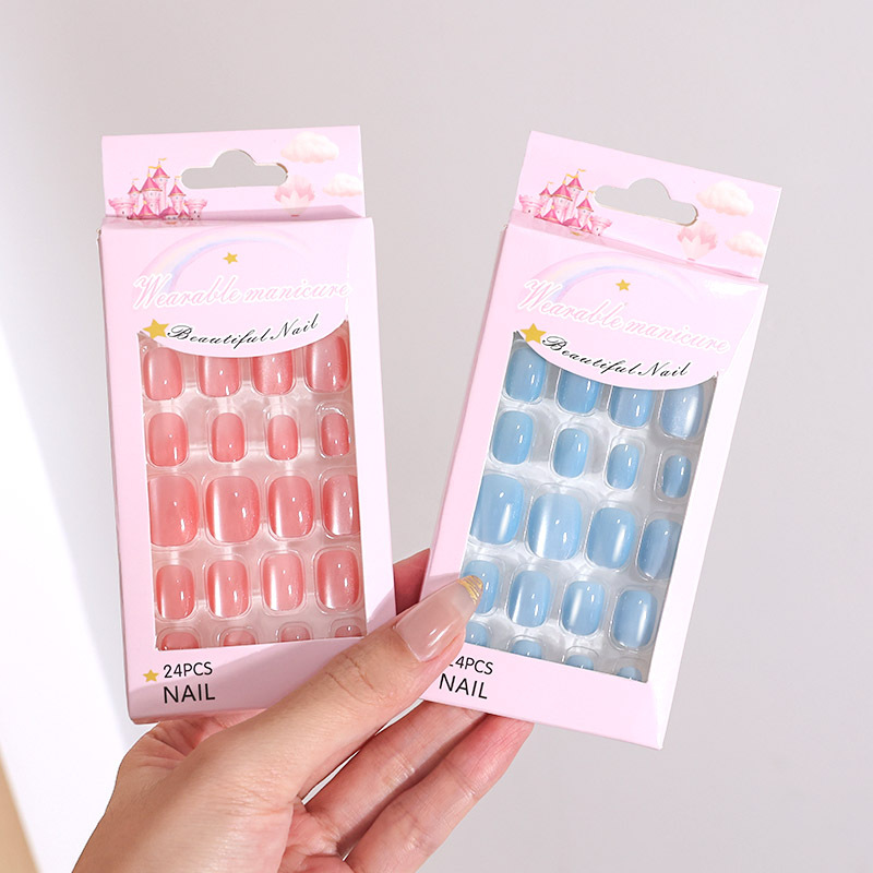 儿童新品穿戴甲多巴胺月光猫眼指甲贴片糖果色甲片贴片