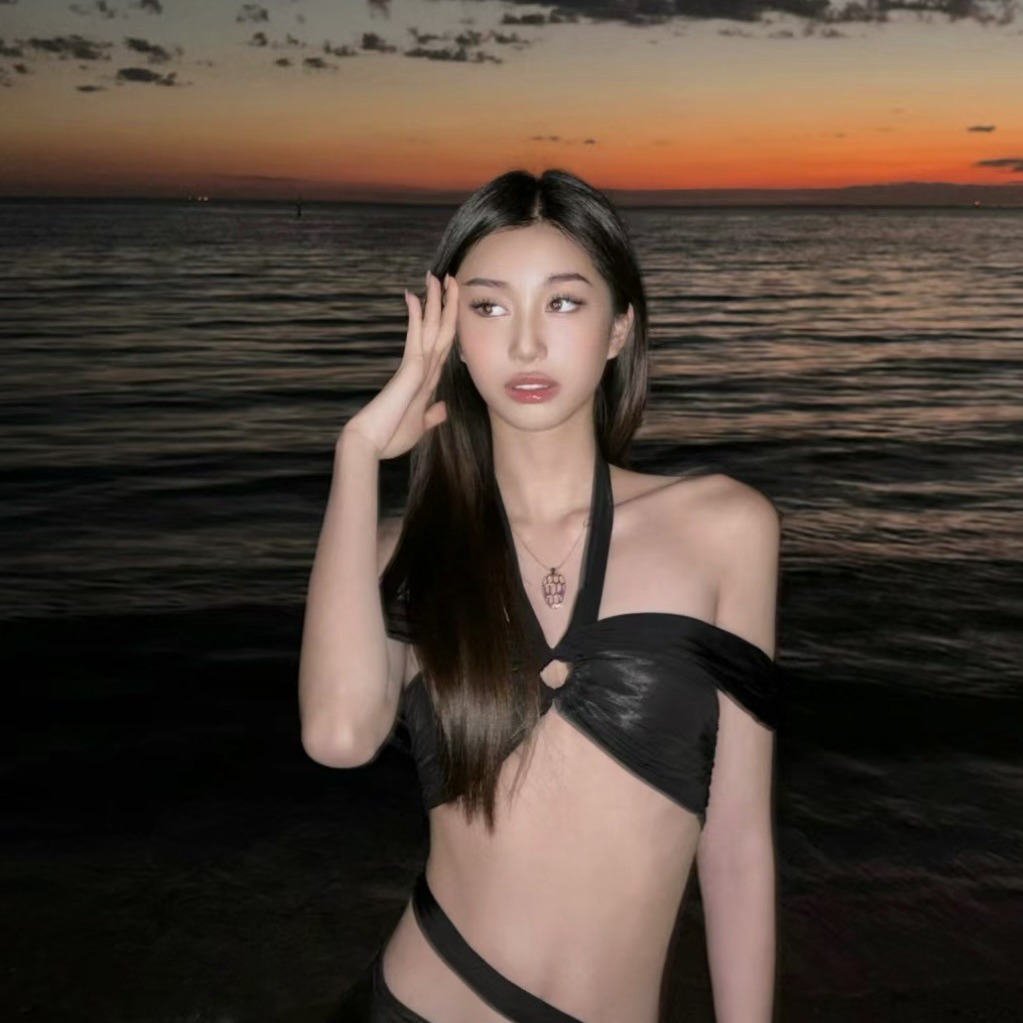 新款泳衣女气质女神性感挂脖一字肩女神范遮肉显瘦沙滩泳装
