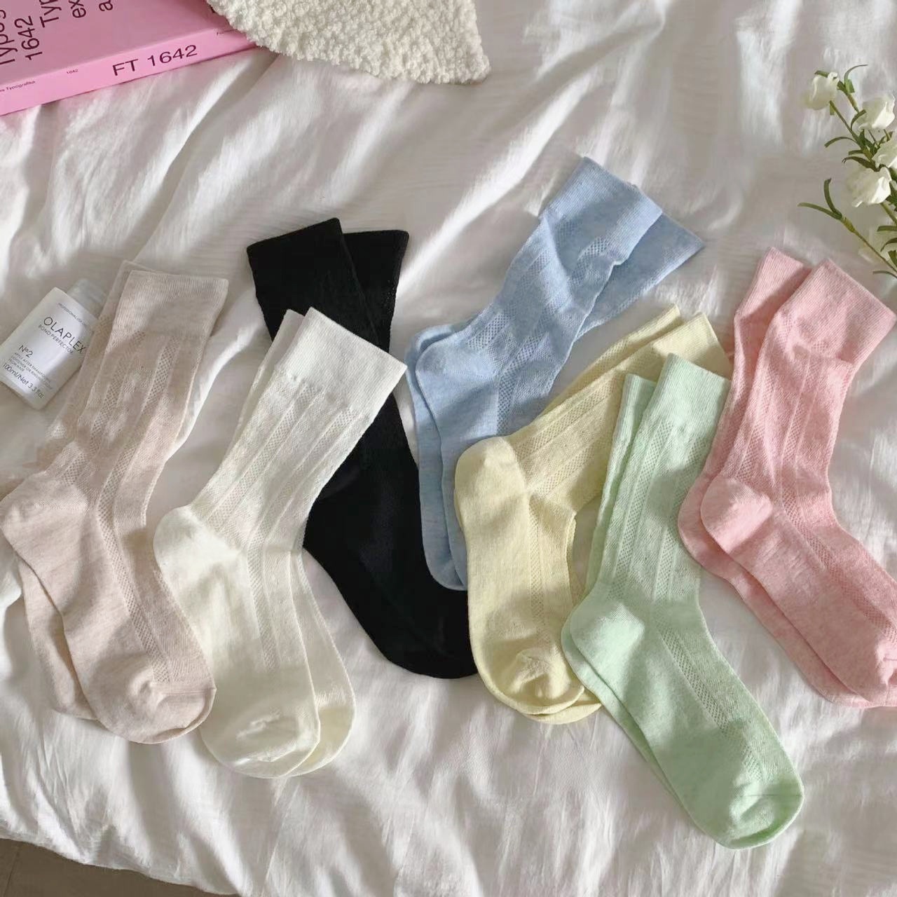 夏天透气网眼袜子男女中筒袜ins潮镂空薄款日系甜美撞色堆堆袜春