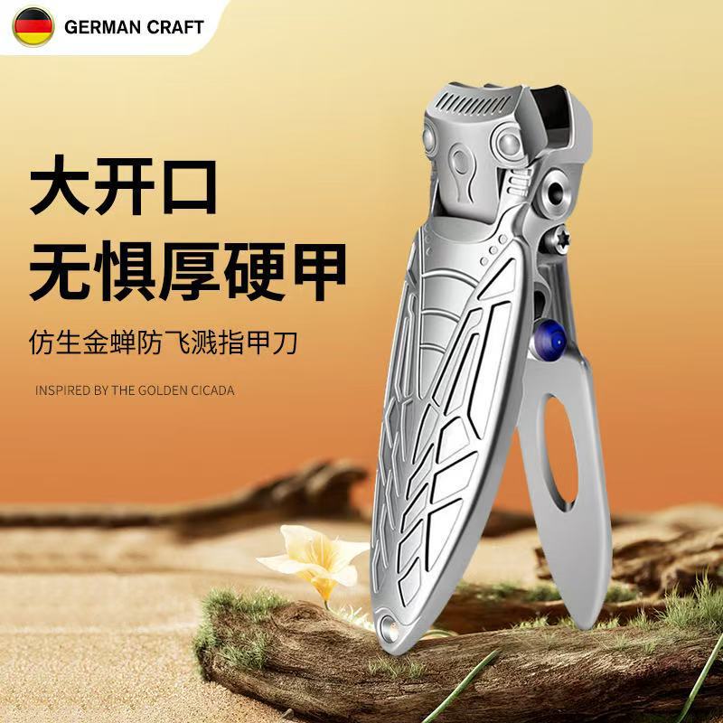 创意金蝉指甲刀不锈钢大开口大号单个指甲钳防飞溅粉末压铸指甲剪