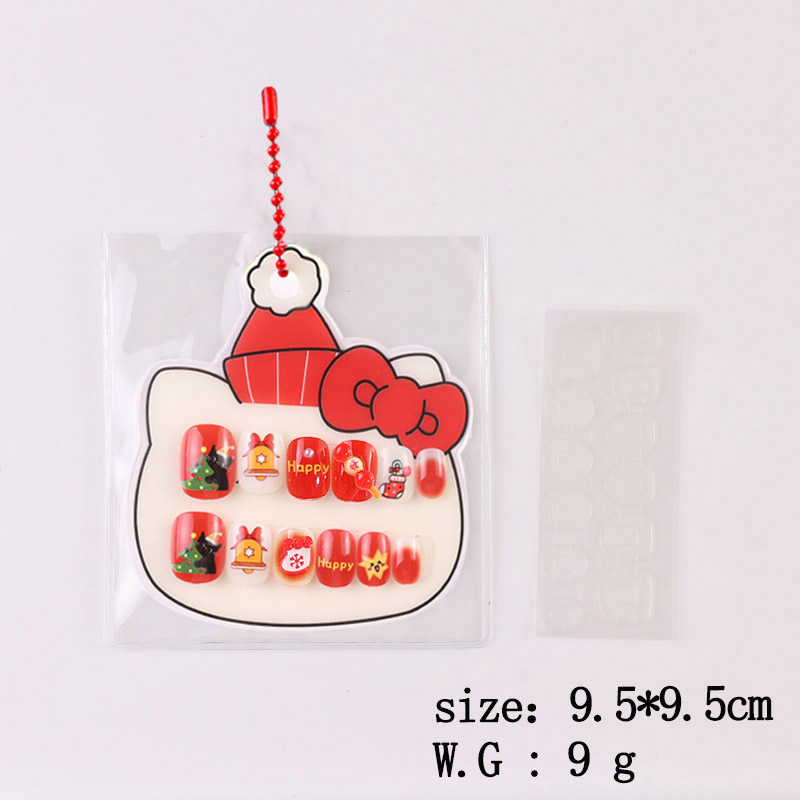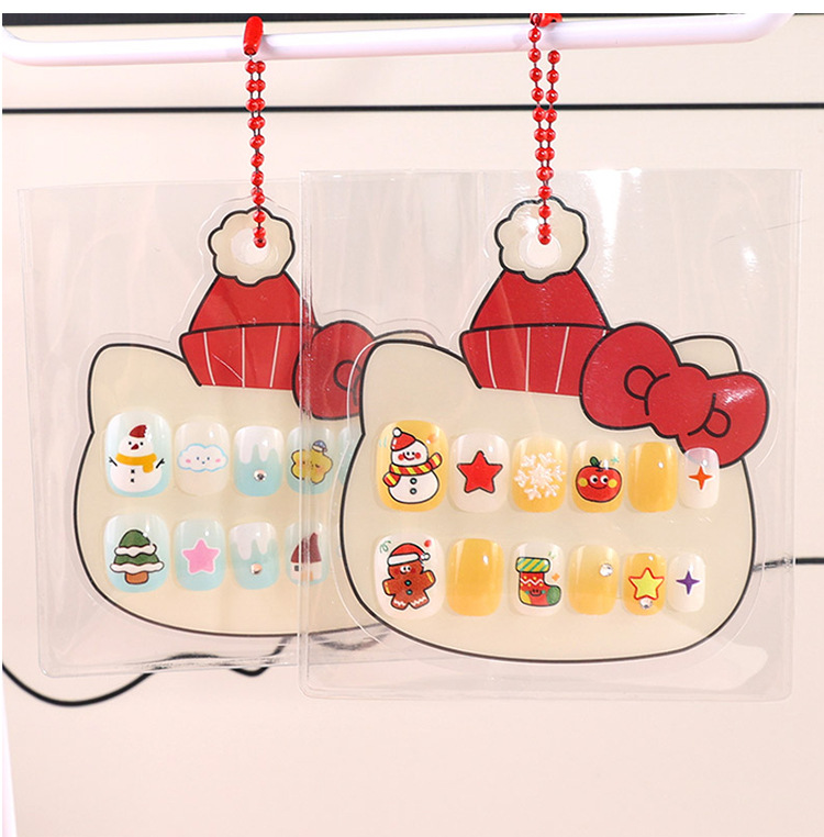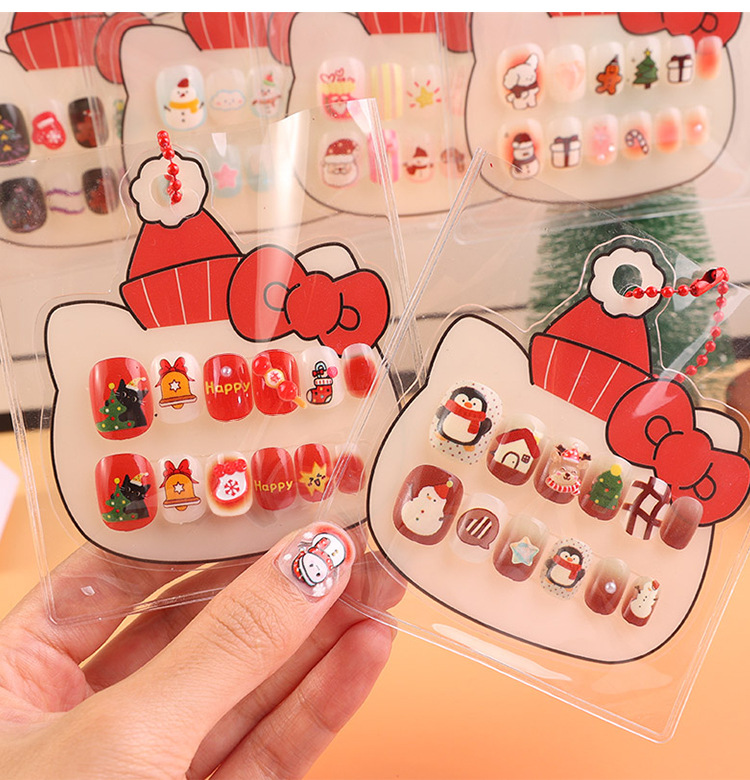 可爱卡通钻饰小女孩指甲片美甲甲片儿童穿戴甲片圣诞假指甲贴片