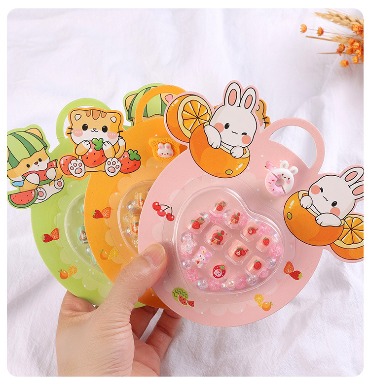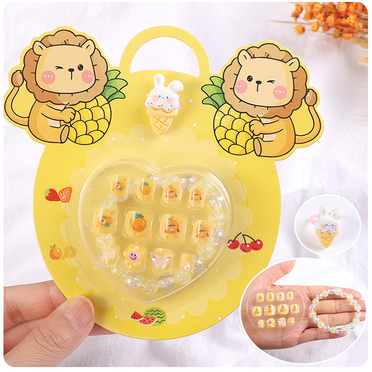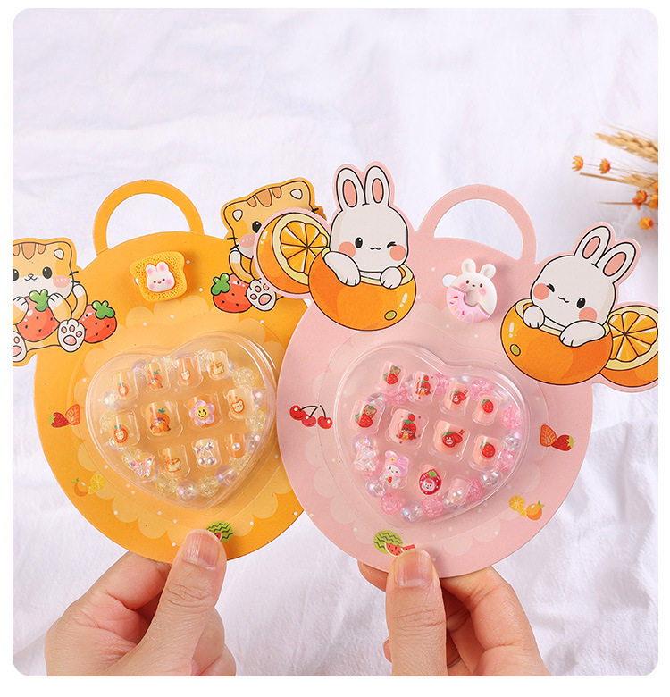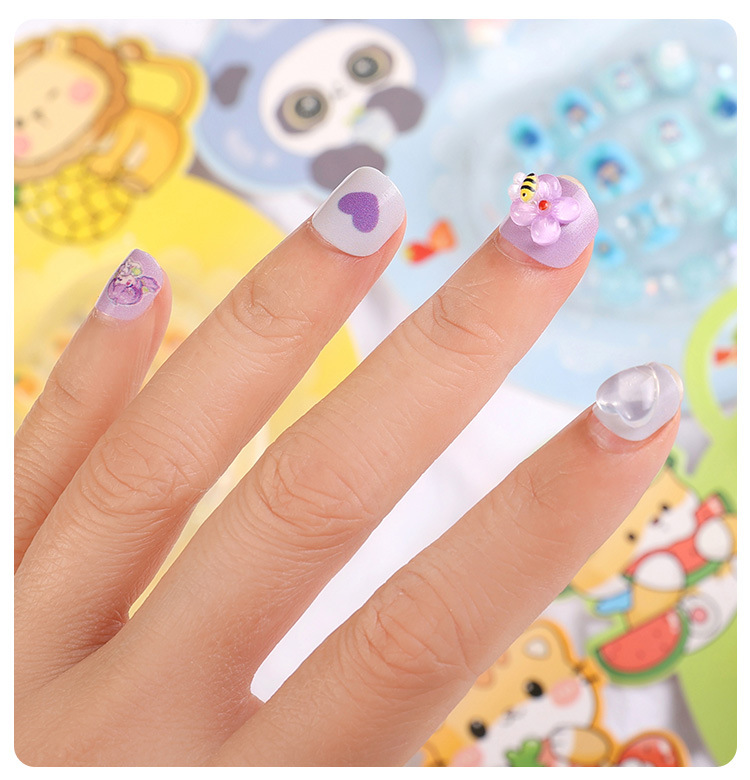 美甲儿童穿戴甲卡通动物背胶甲片成品假指甲带钻指甲贴片指甲片