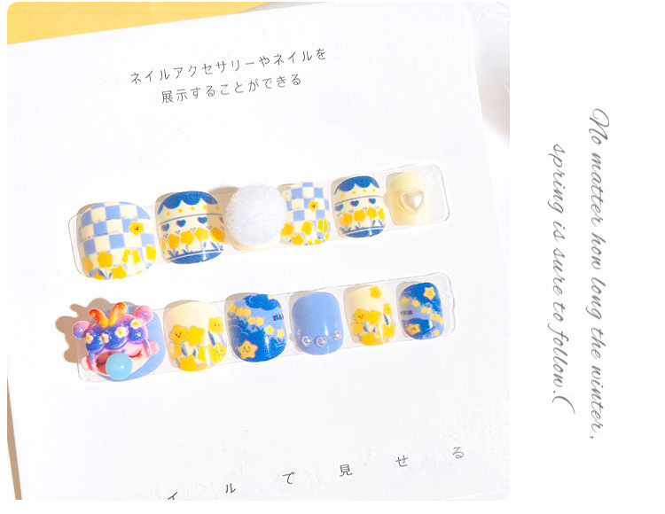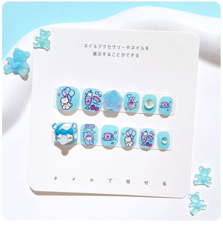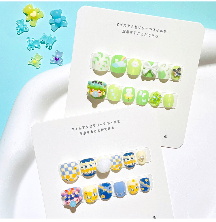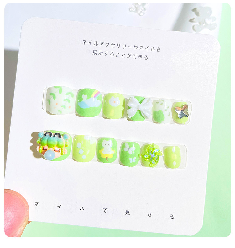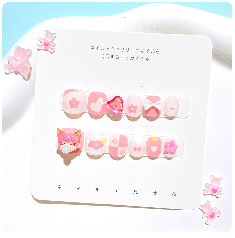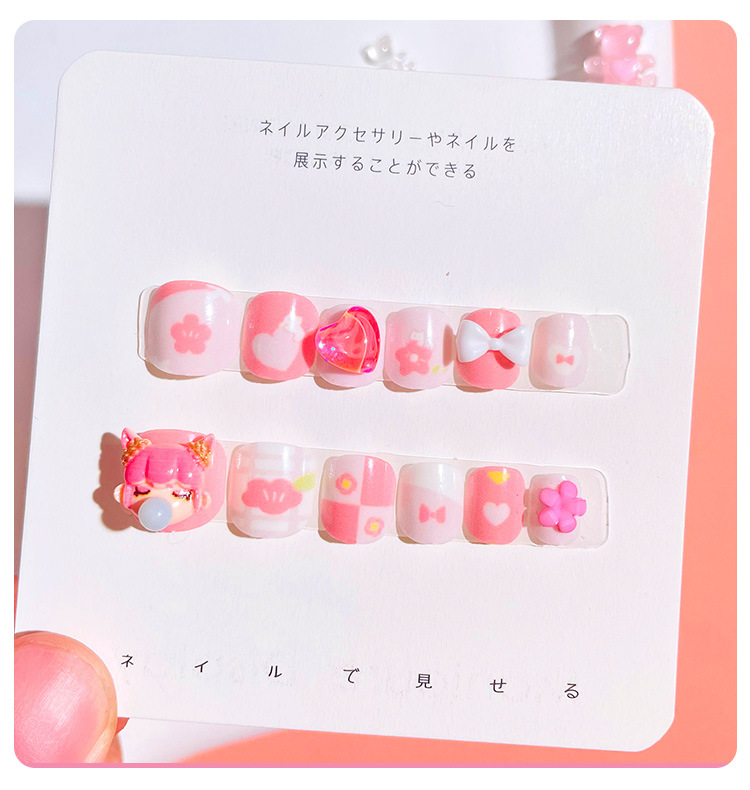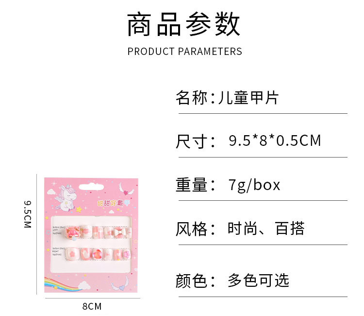新款美甲儿童甲片儿童女孩带配饰指甲片穿戴式甲片带果冻胶假指甲