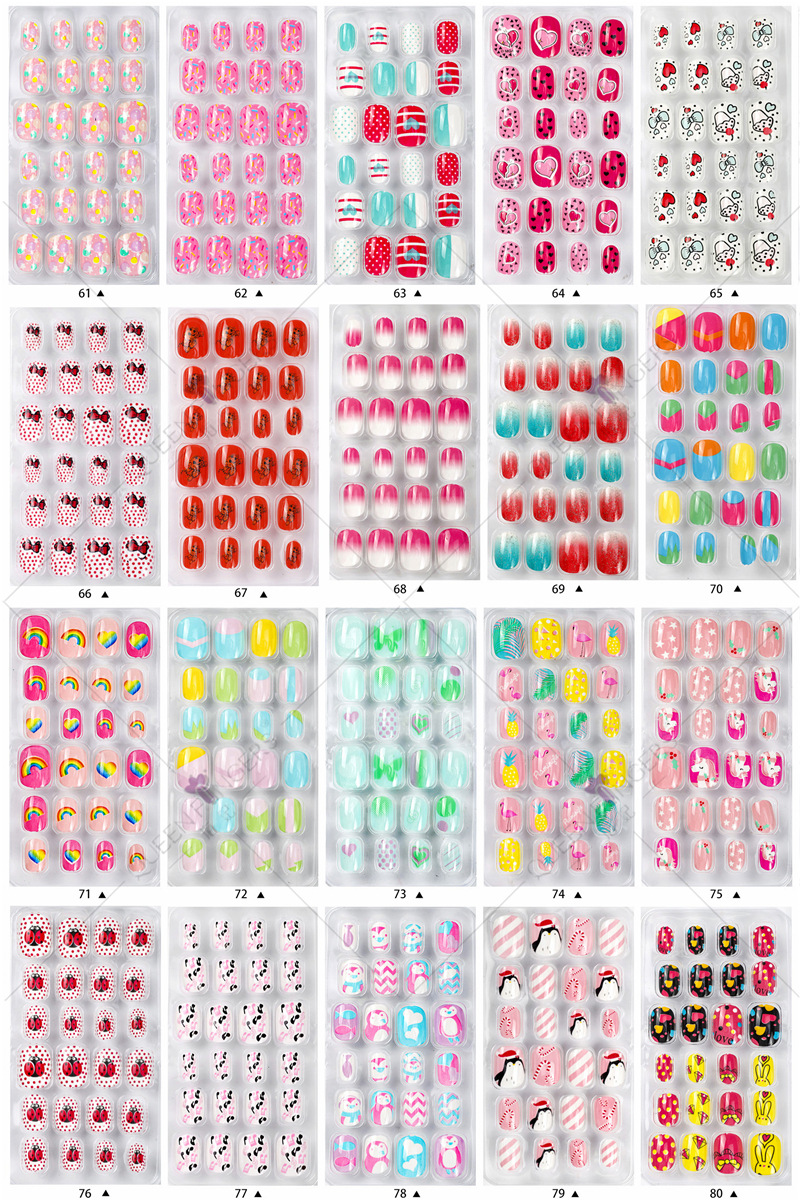 美甲儿童成品甲片24片背胶圣诞节卡通袋装可穿戴彩色甲片指甲贴片