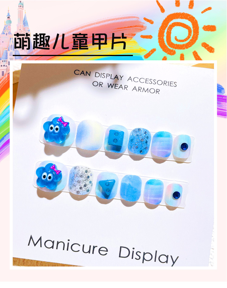 新款儿童指甲贴女孩美甲贴果冻胶可爱甲片贴片穿戴式甲片假指甲