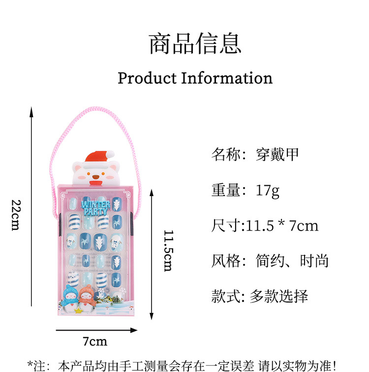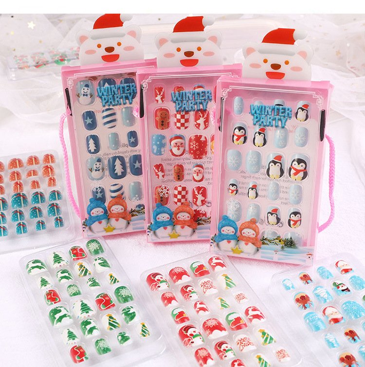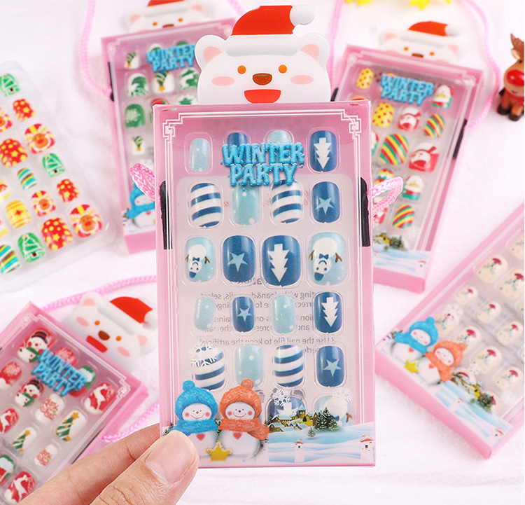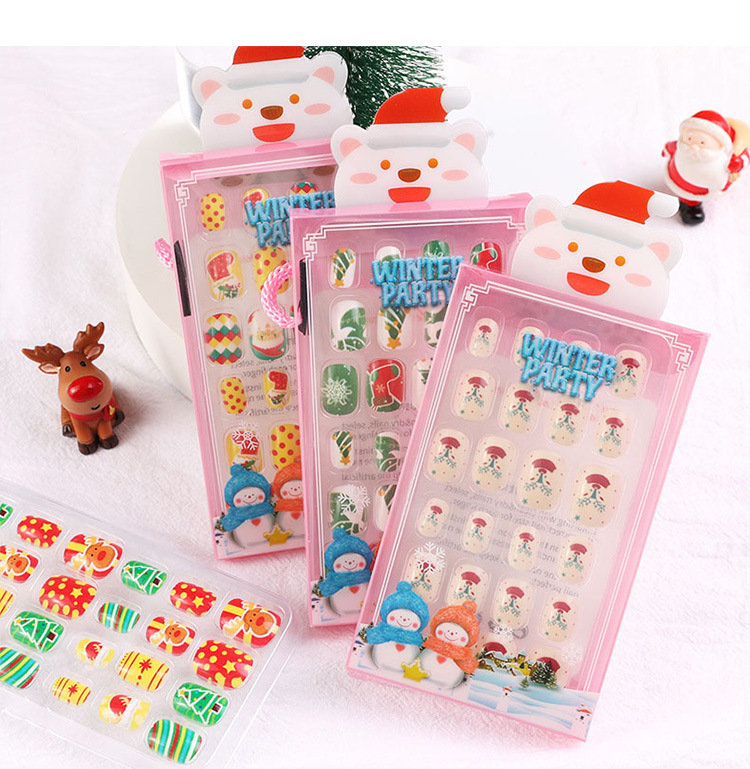 儿童指甲贴纸宝宝幼儿男女孩卡通公主美甲片贴果冻胶圣诞穿戴甲