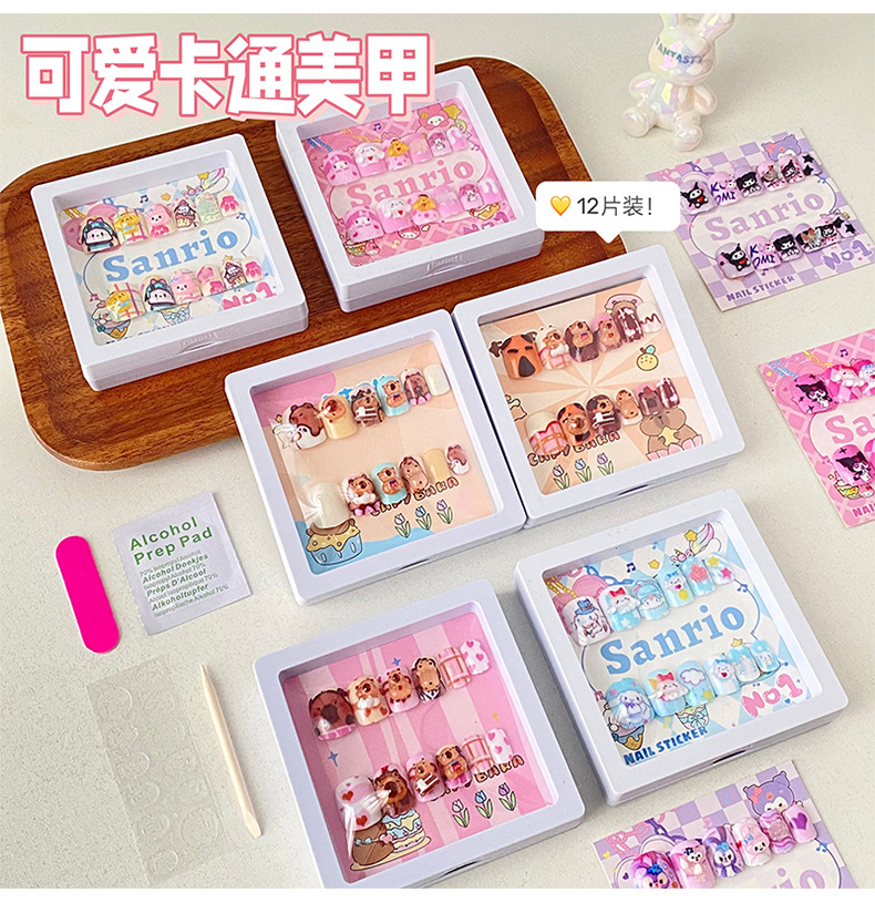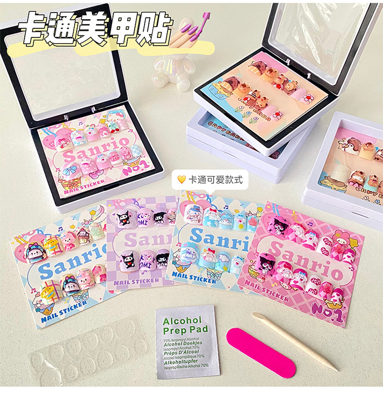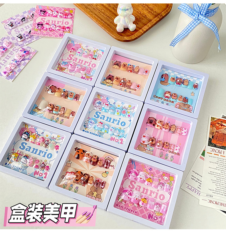 三俪鸥卡皮巴拉儿童美甲贴片女孩可爱卡通美甲装饰贴纸贴片穿戴甲