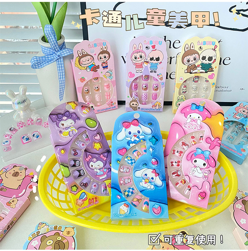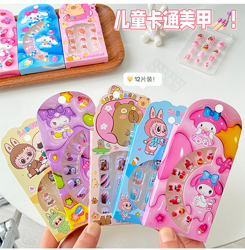 新卡通儿童美甲贴可爱动物印花指甲贴片小女孩甜美指甲贴贴纸装饰