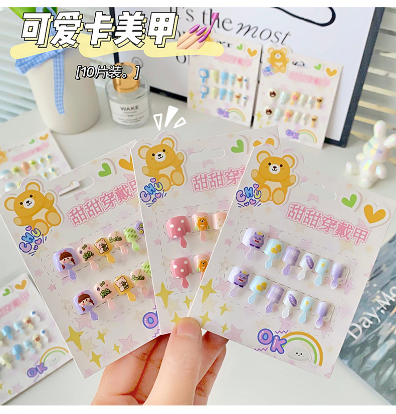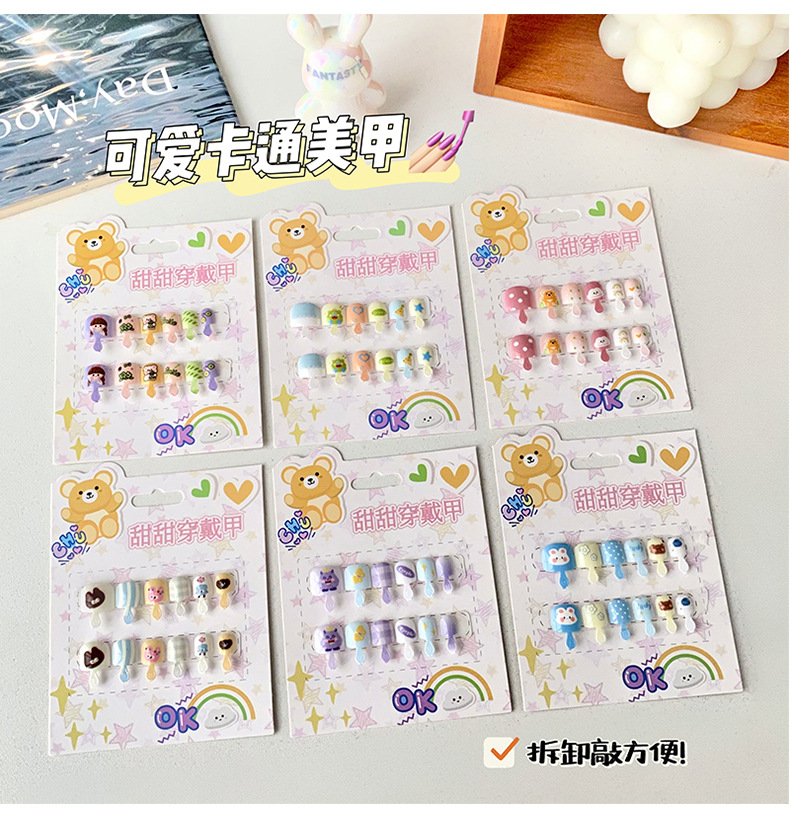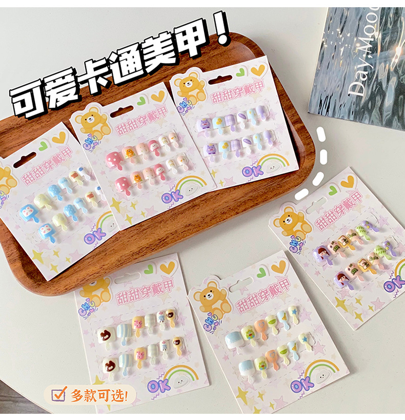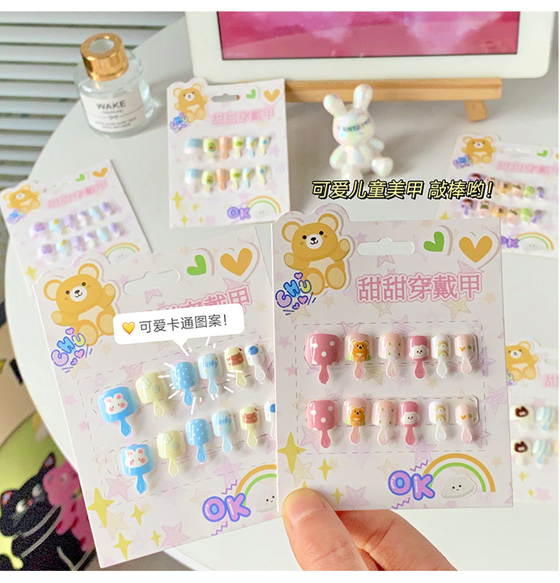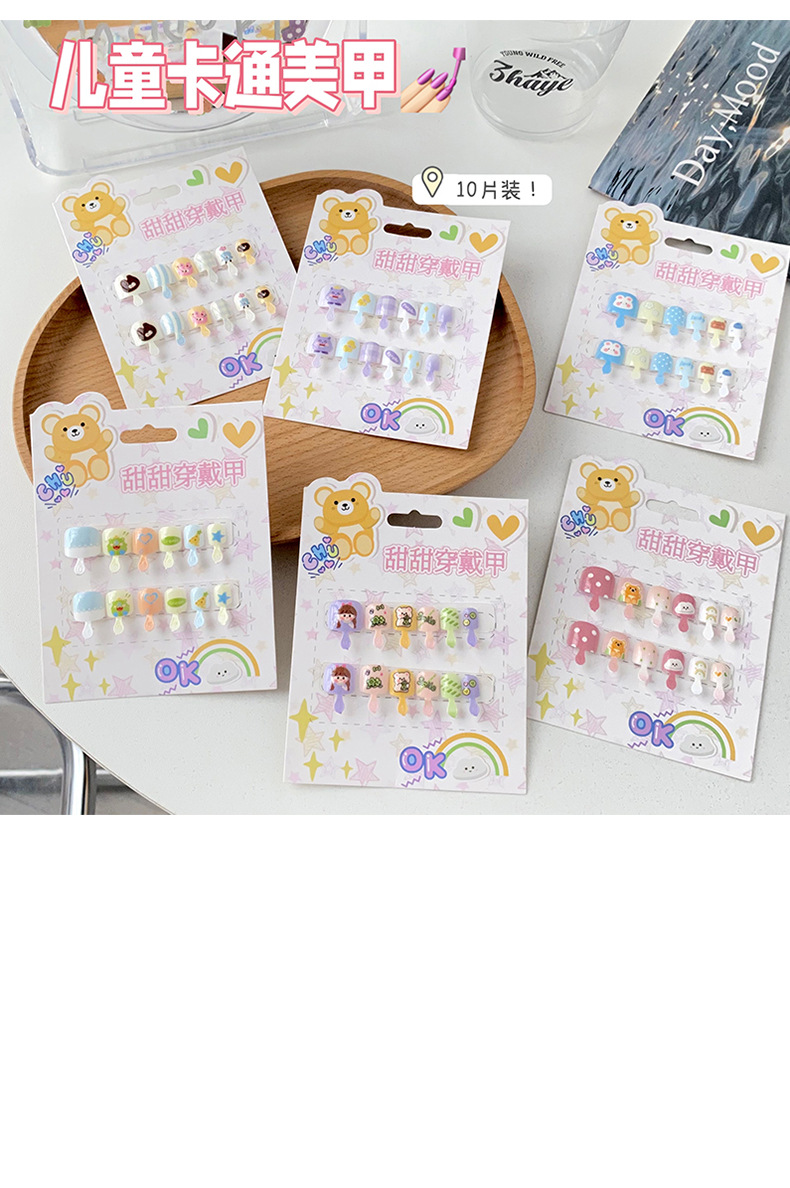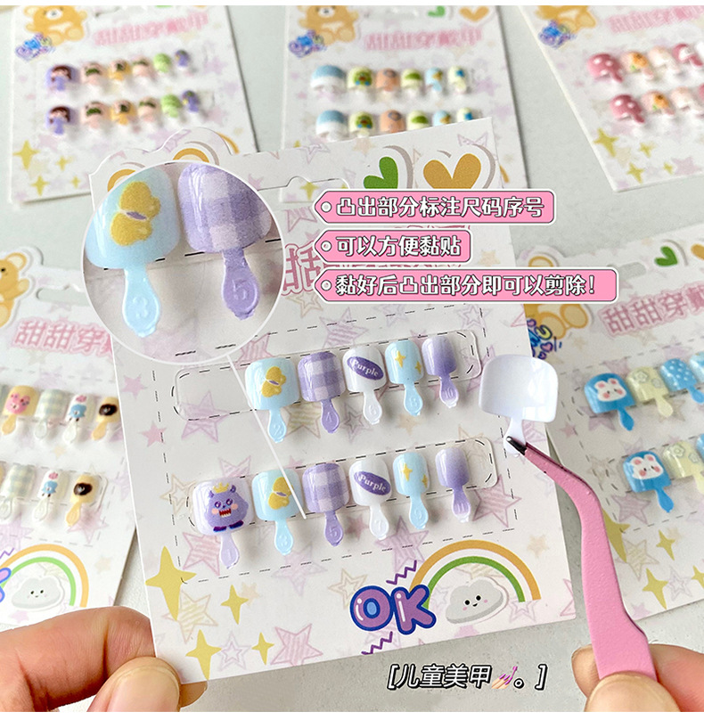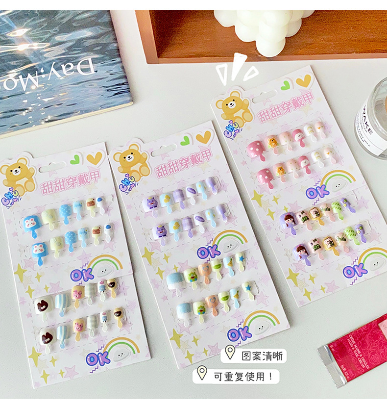 儿童穿戴甲可爱不伤手浮雕款儿童美甲片自带背胶可重复使用可拆卸
