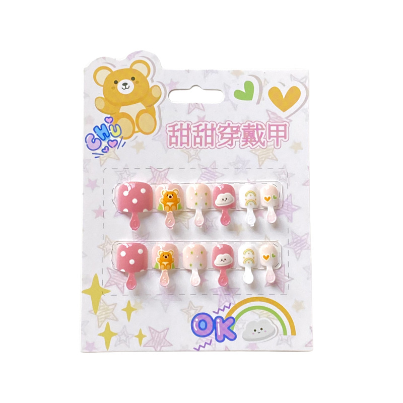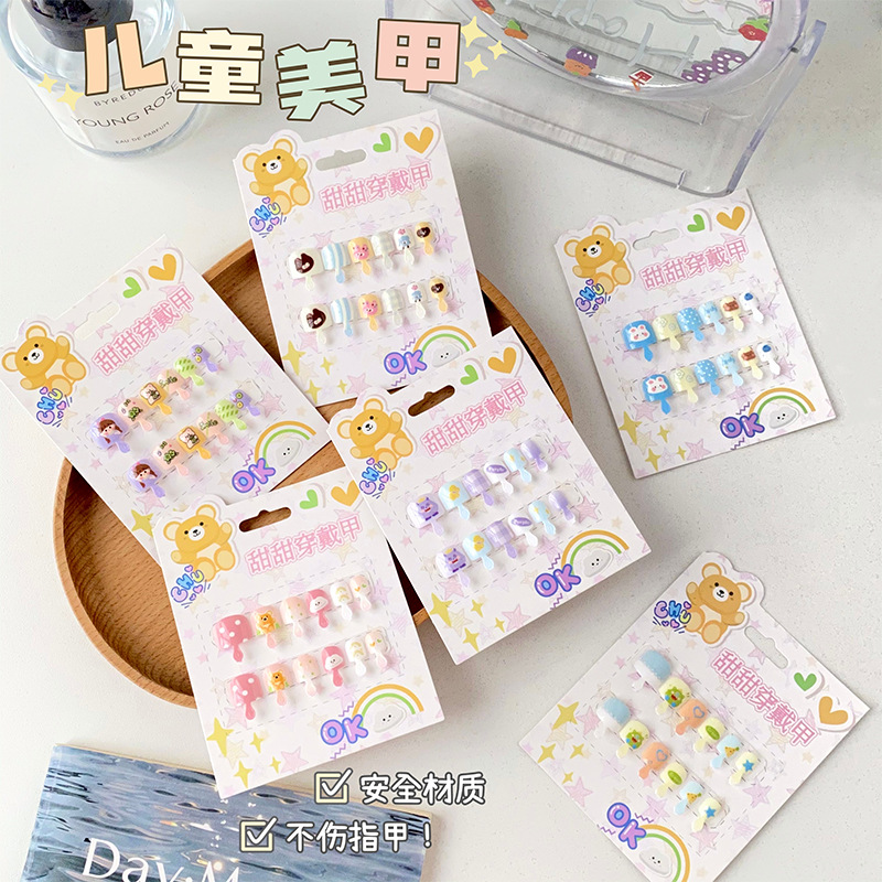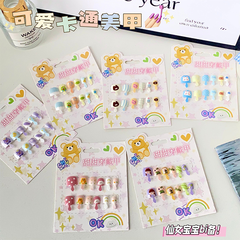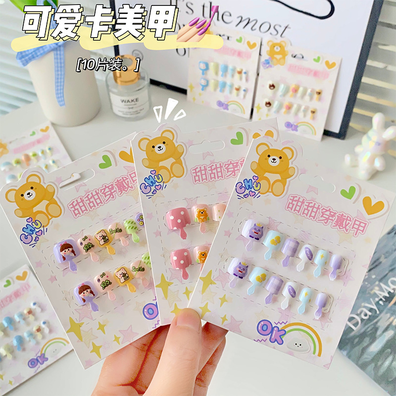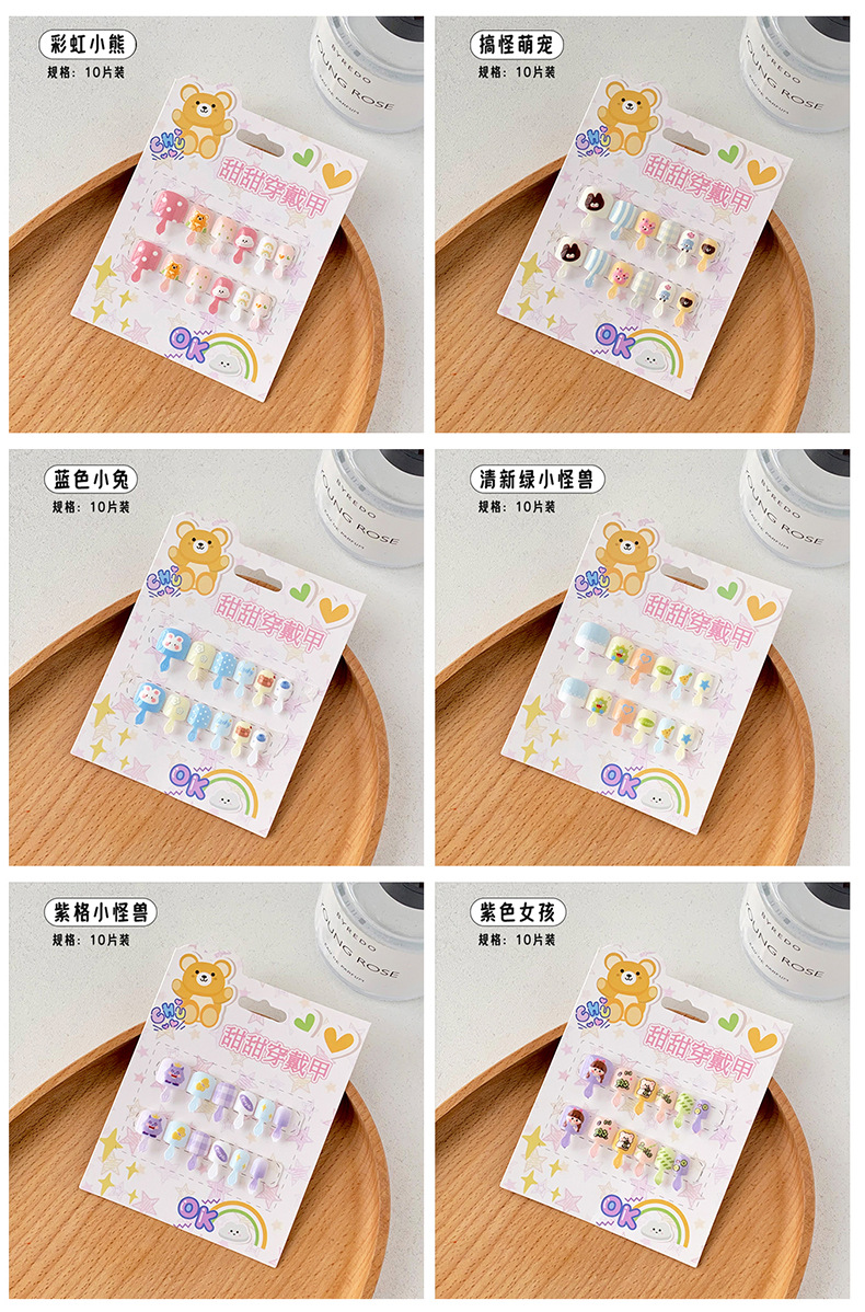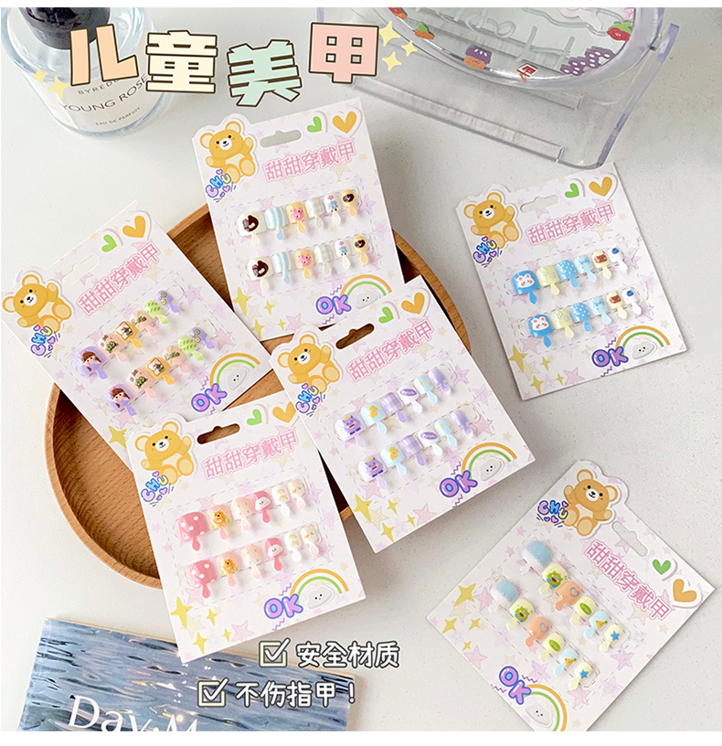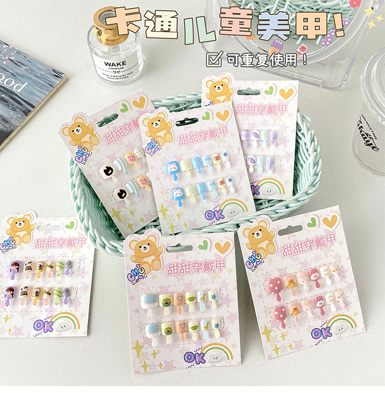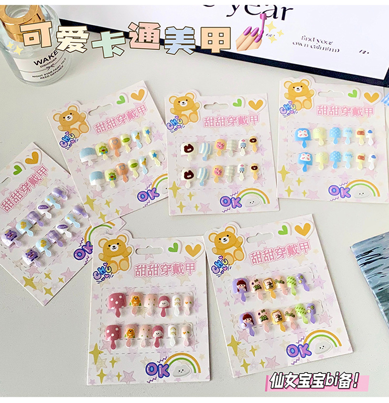 儿童穿戴甲可爱不伤手浮雕款儿童美甲片自带背胶可重复使用可拆卸