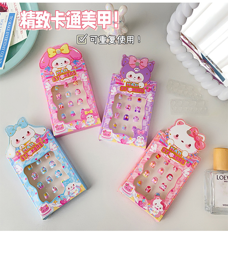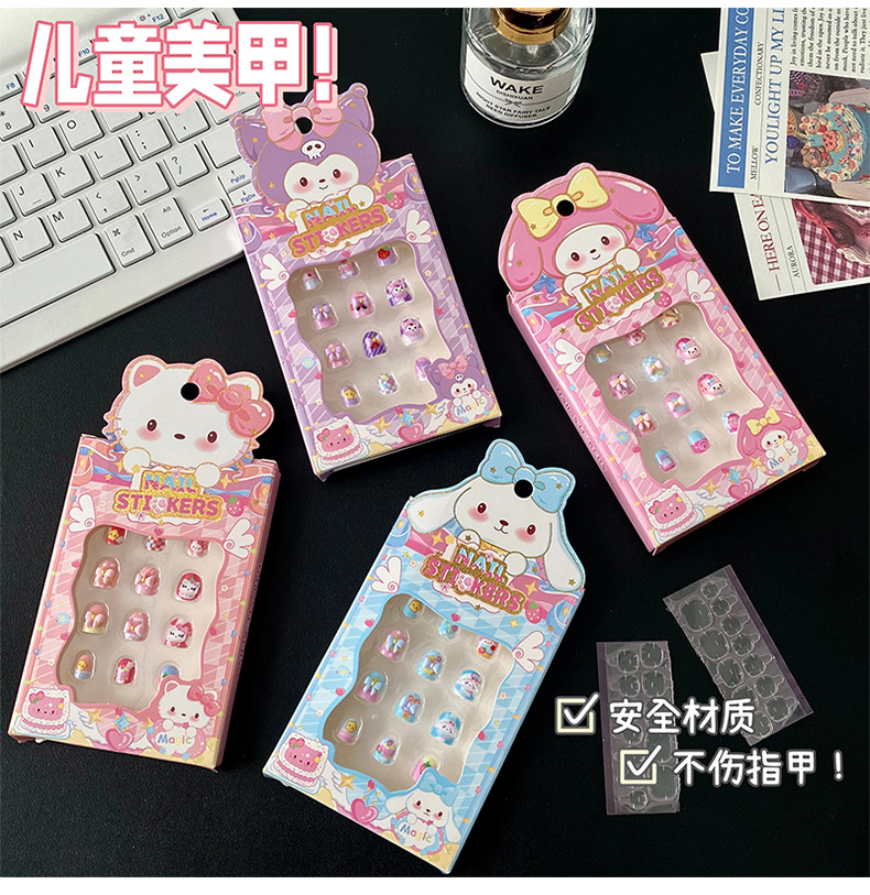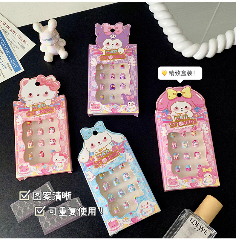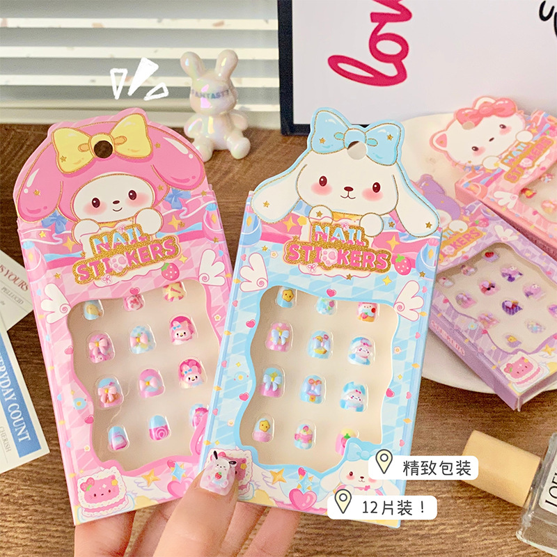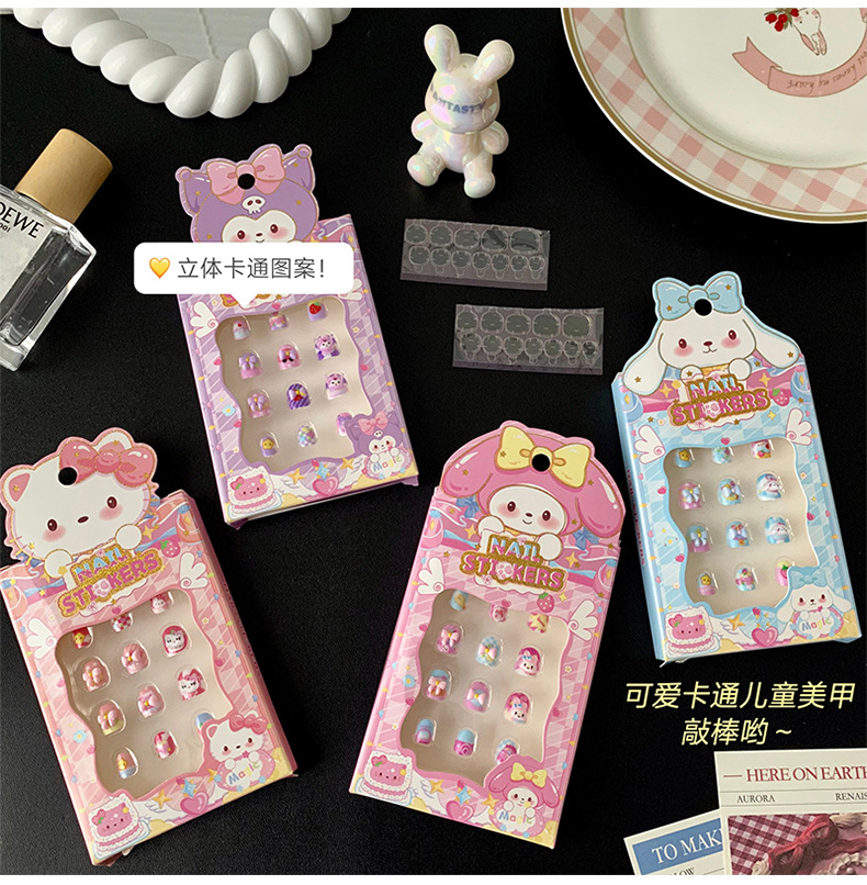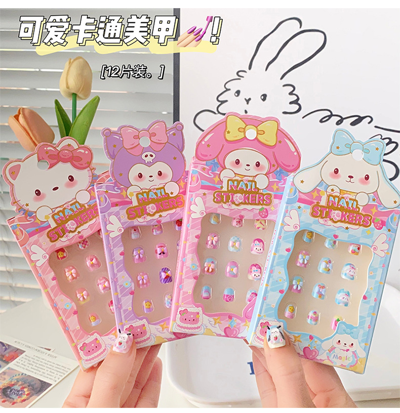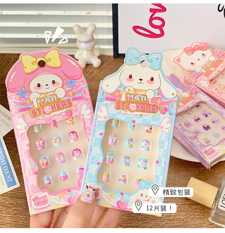 可爱卡通风格穿戴甲儿童短款美甲片穿戴式可拆卸假指甲贴片