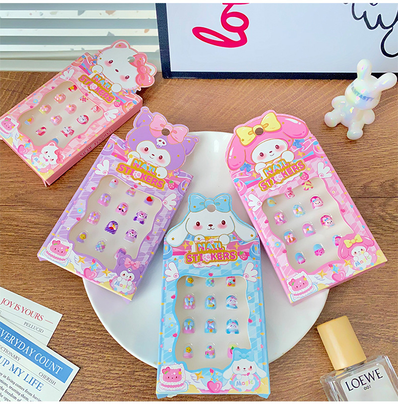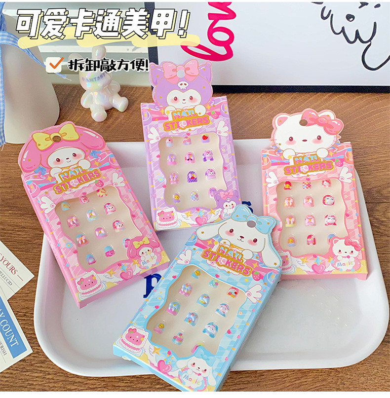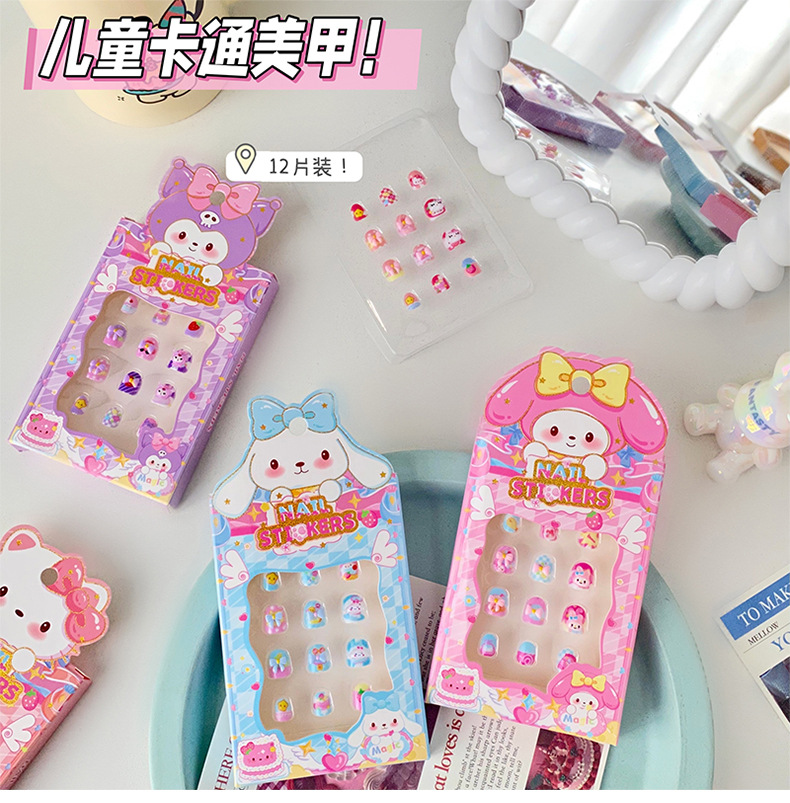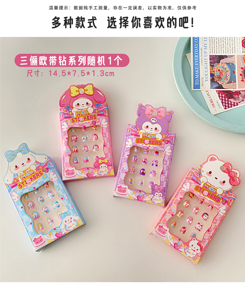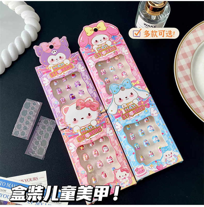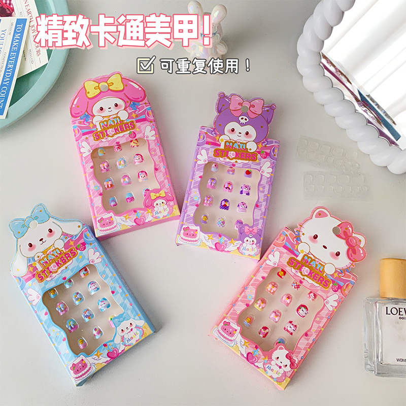 可爱卡通风格穿戴甲儿童短款美甲片穿戴式可拆卸假指甲贴片