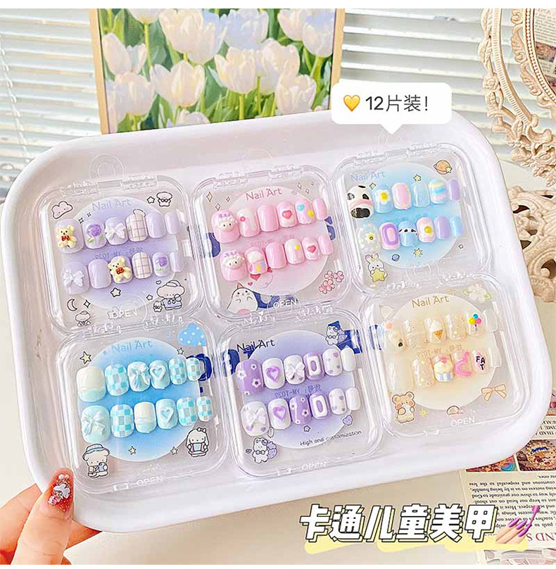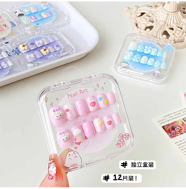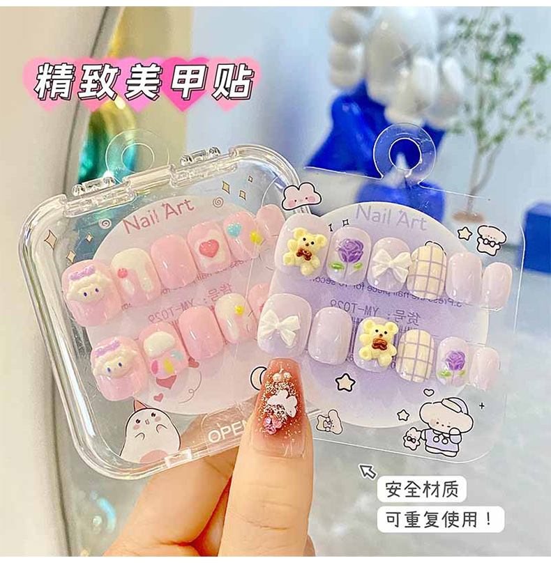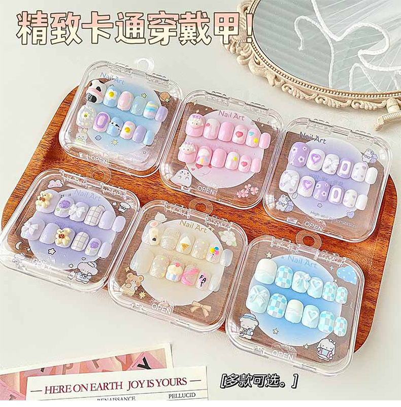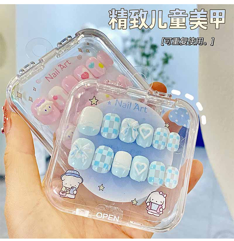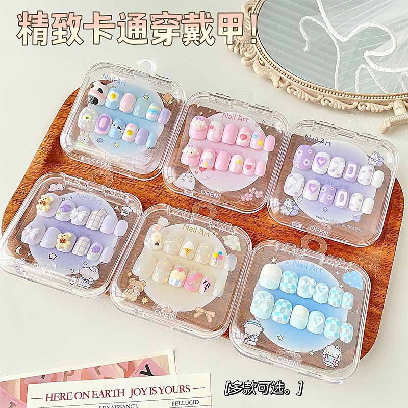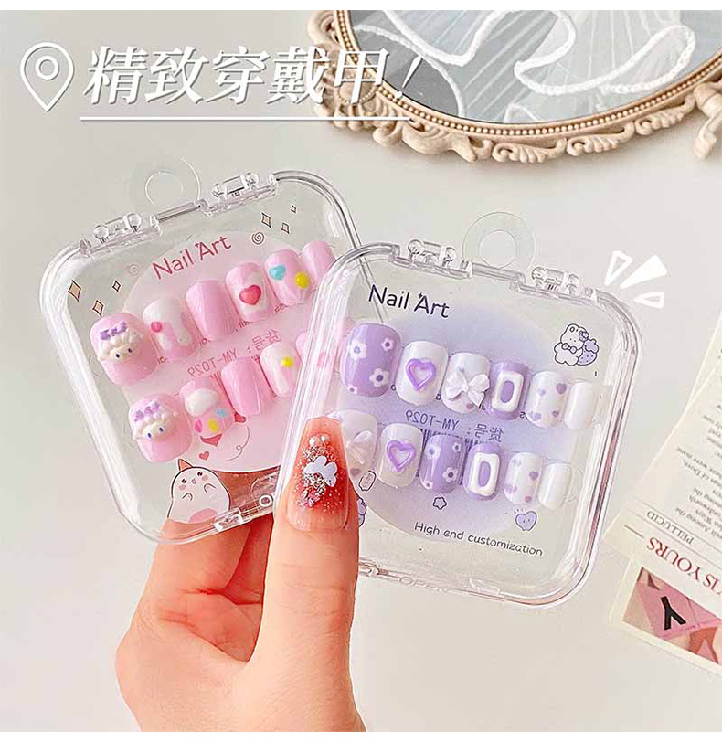 新款卡通儿童美甲少女心女童穿戴甲贴片精美透明女孩礼盒套装