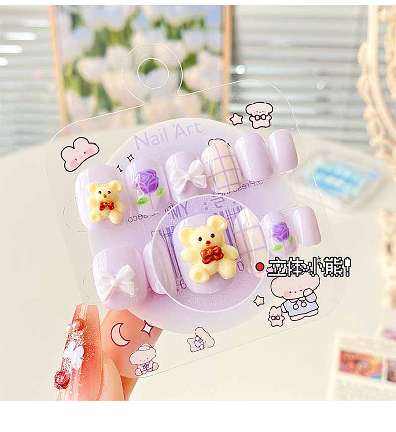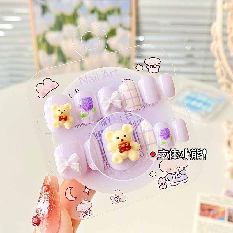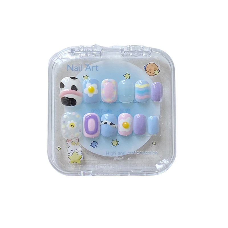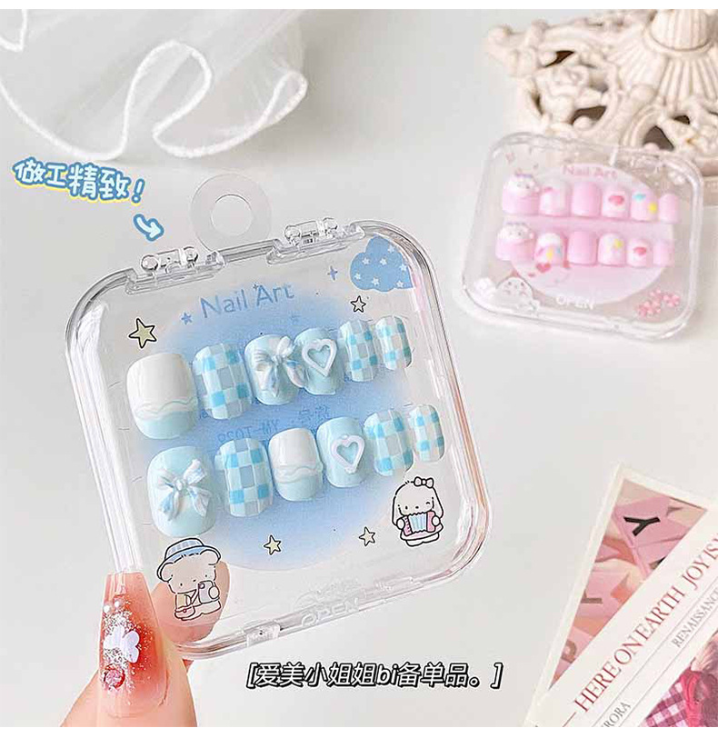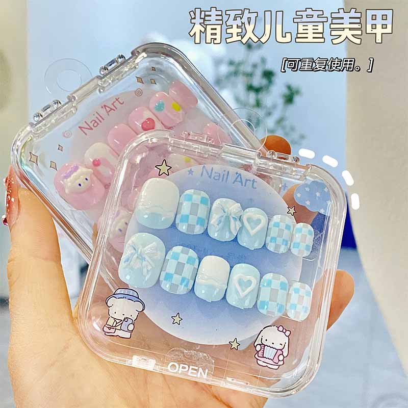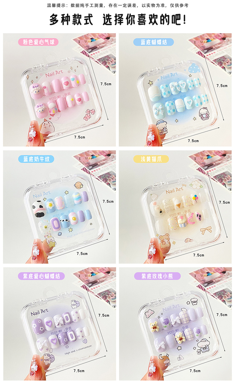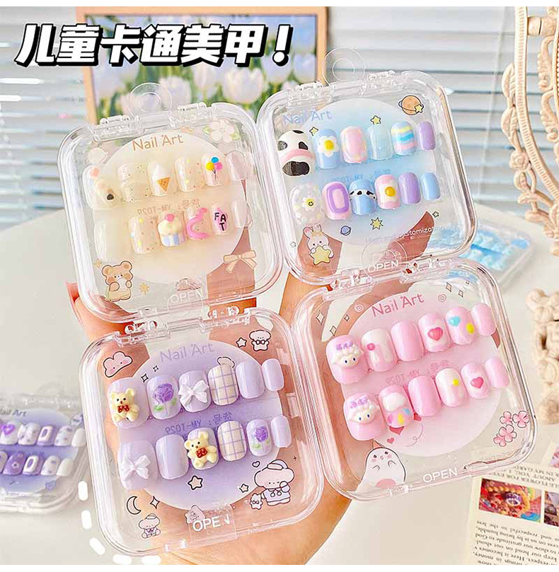 新款卡通儿童美甲少女心女童穿戴甲贴片精美透明女孩礼盒套装