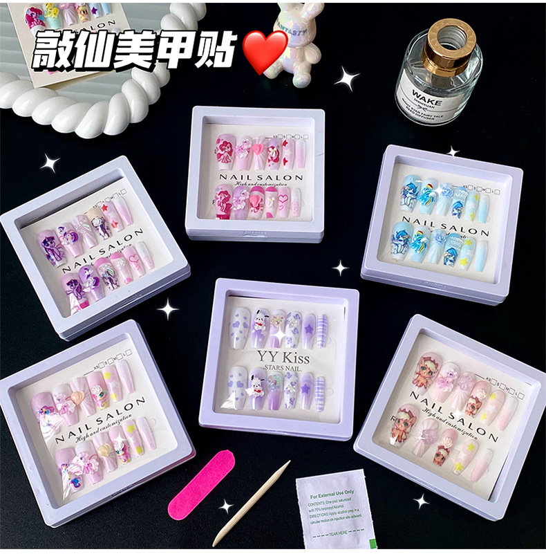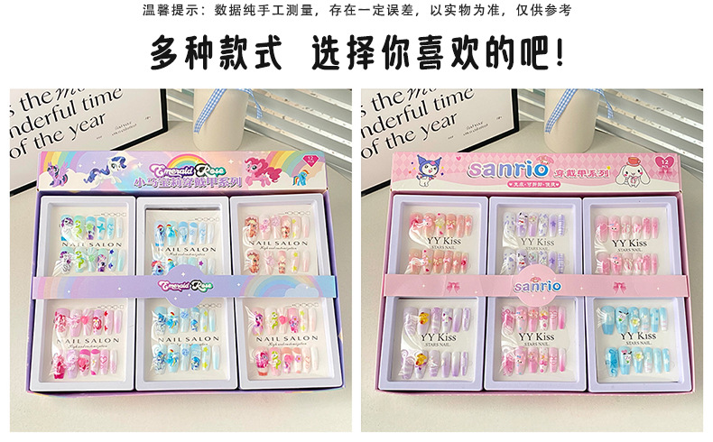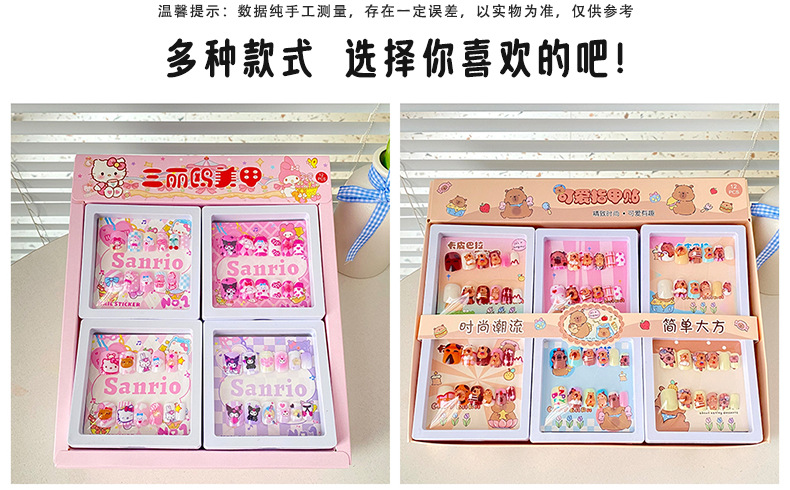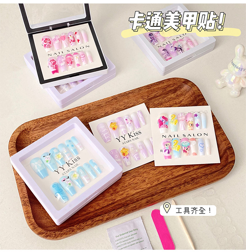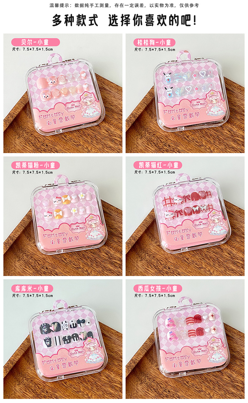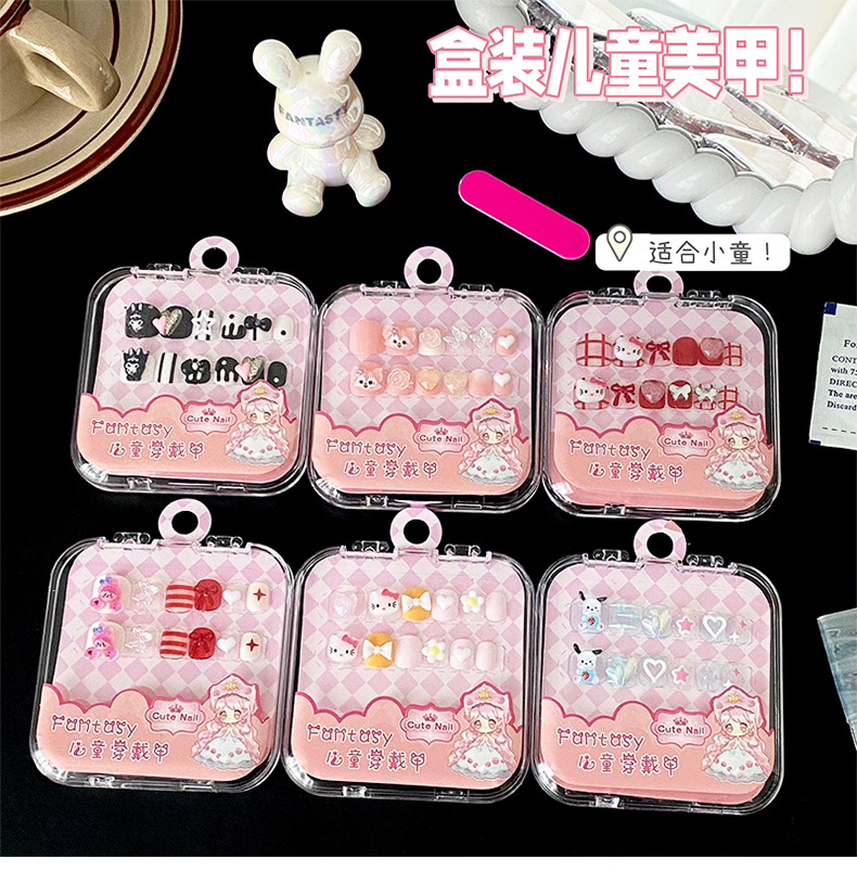 新款盒装儿童指甲贴卡通可爱立体美甲贴片少女心穿戴甲配美甲工具