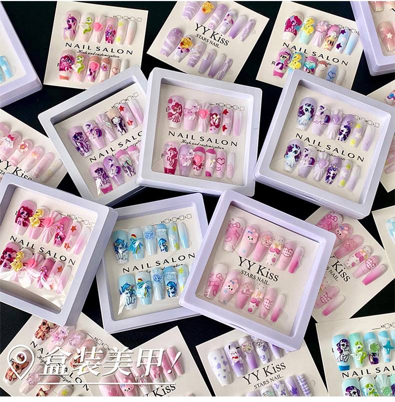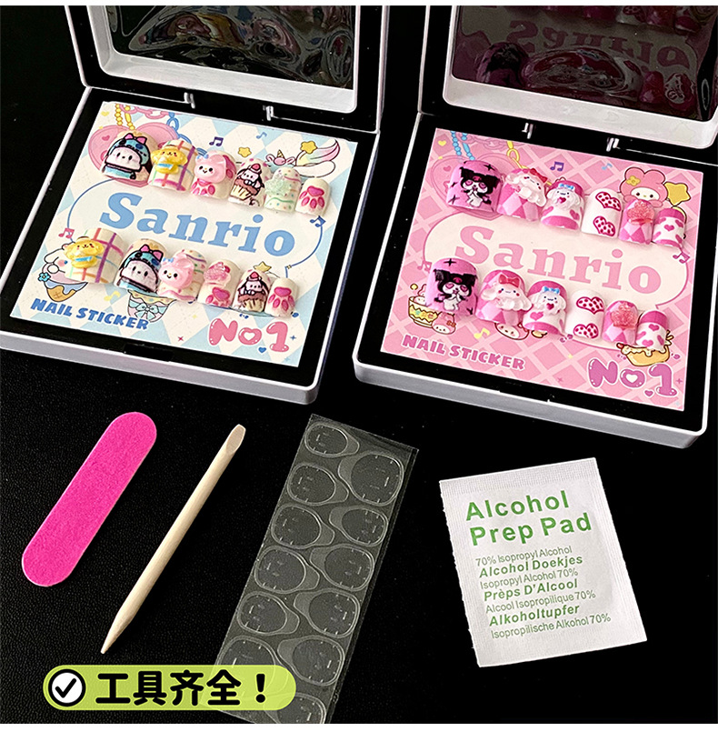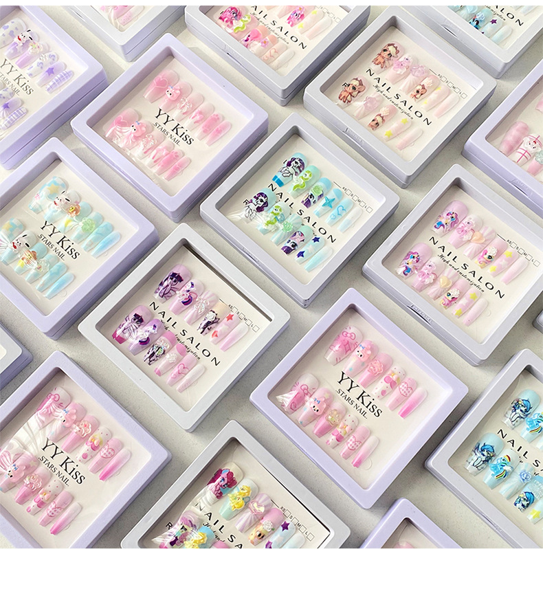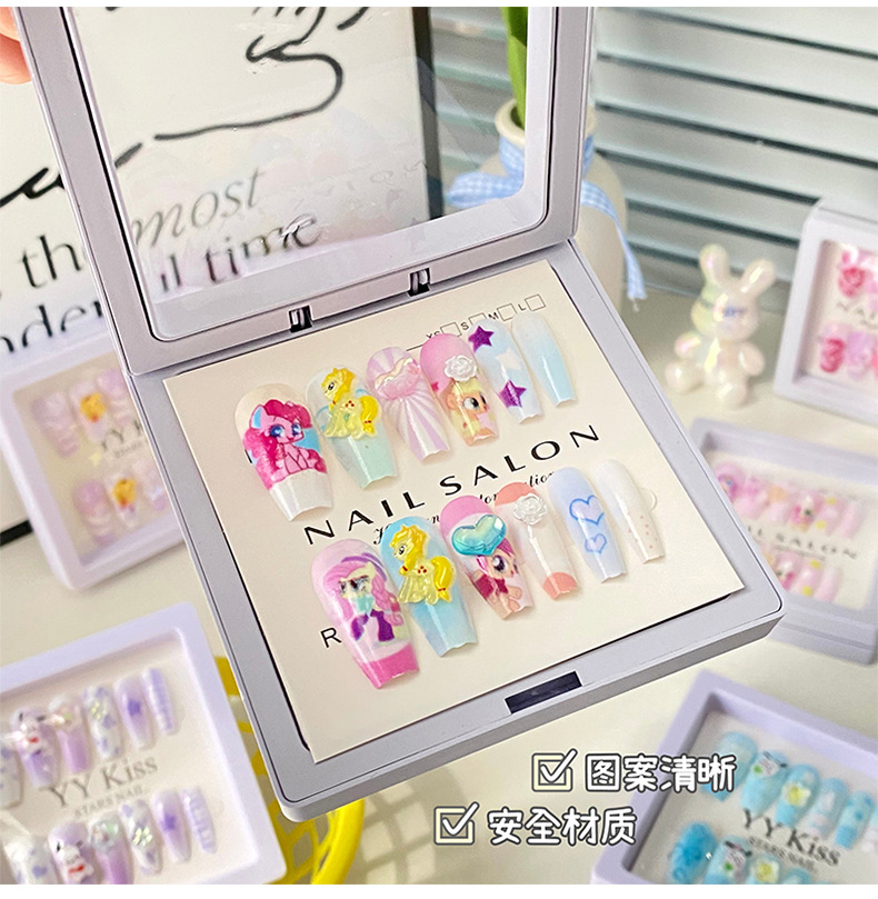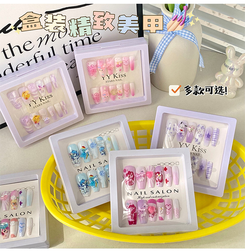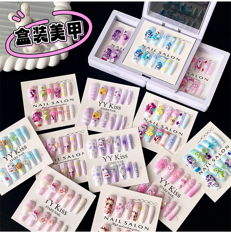 新款盒装儿童指甲贴卡通可爱立体美甲贴片少女心穿戴甲配美甲工具