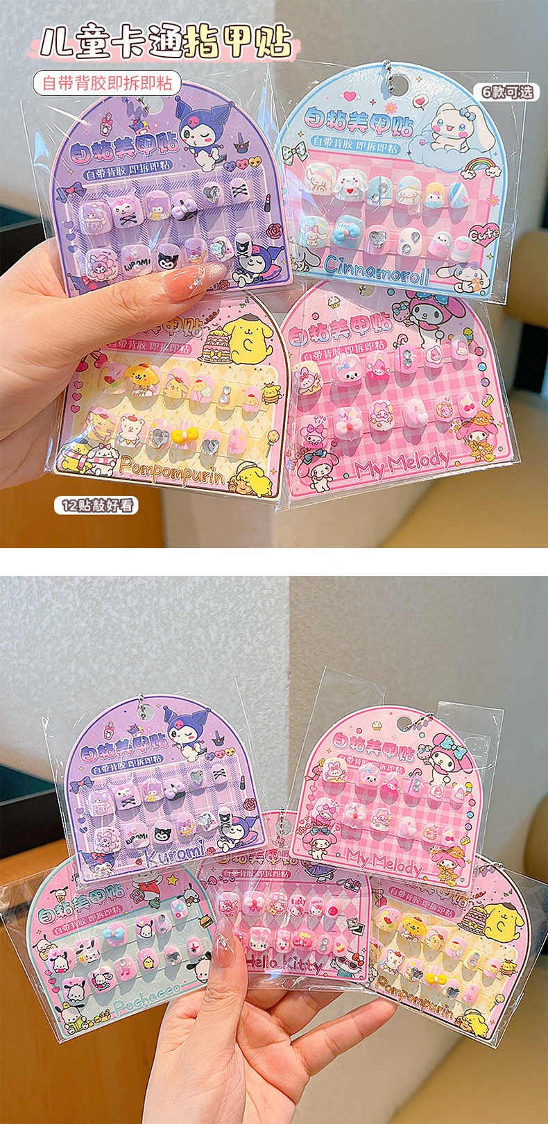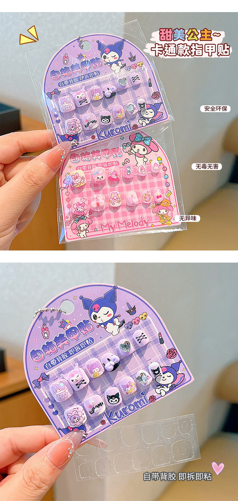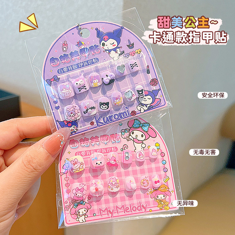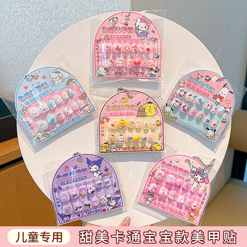 三丽鸥儿童指甲贴2025新款女童穿戴甲自粘卡通小女孩美甲无毒无味