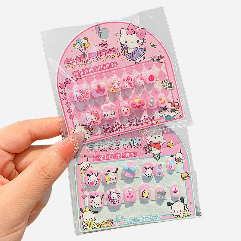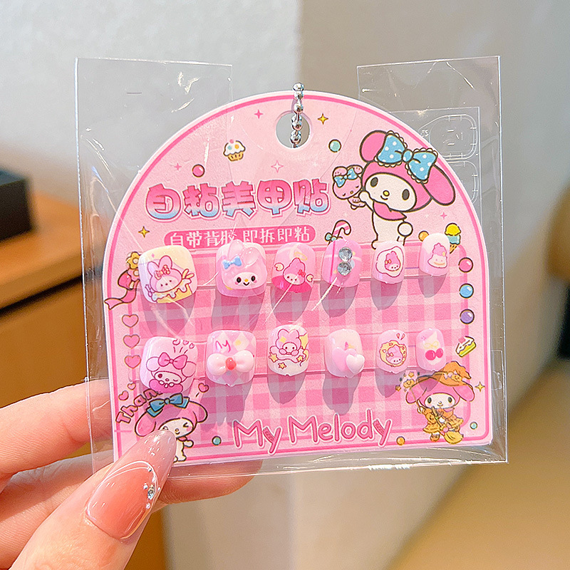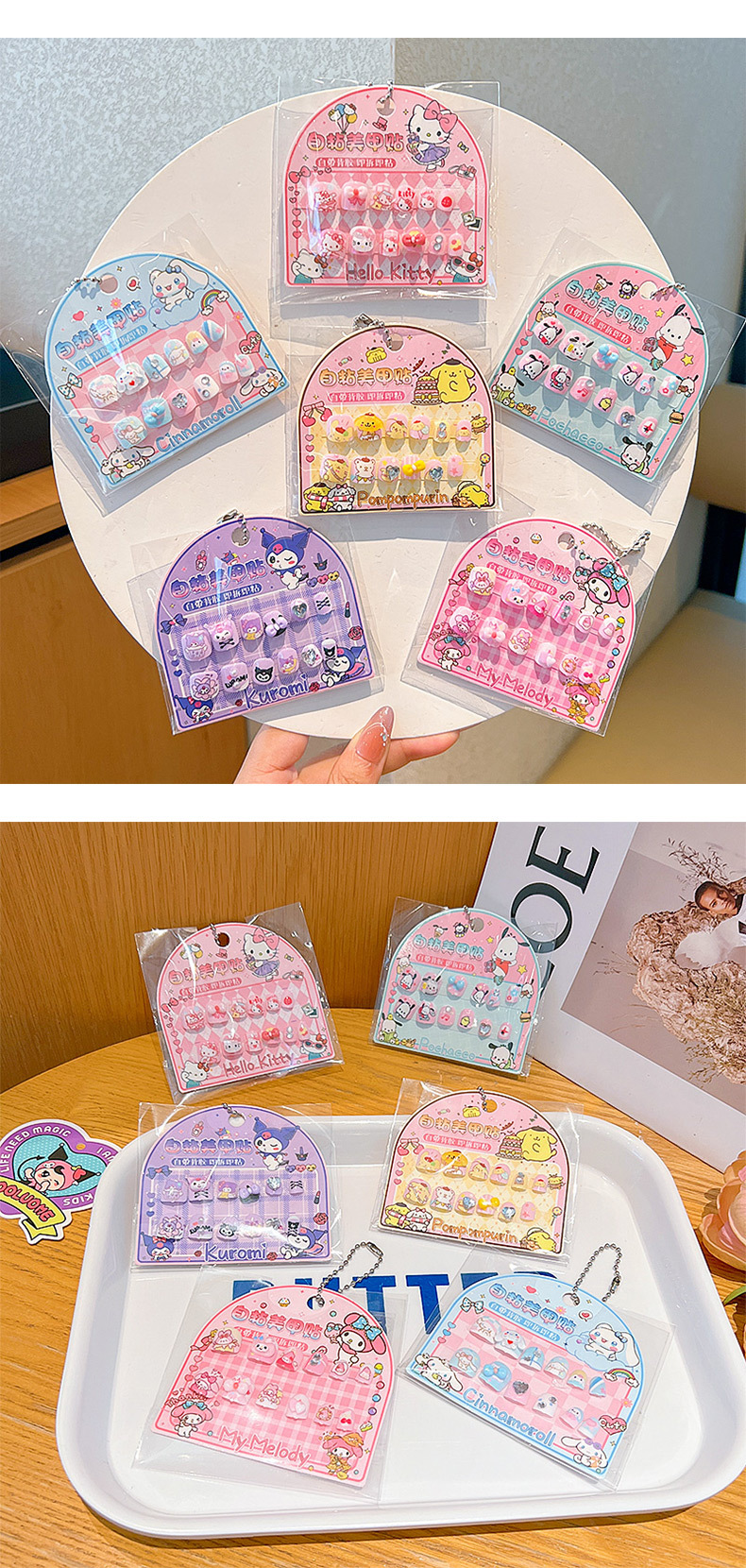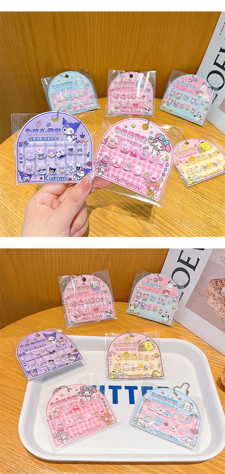 三丽鸥儿童指甲贴2025新款女童穿戴甲自粘卡通小女孩美甲无毒无味