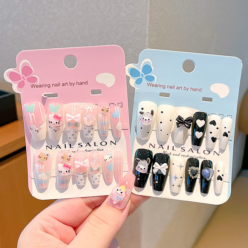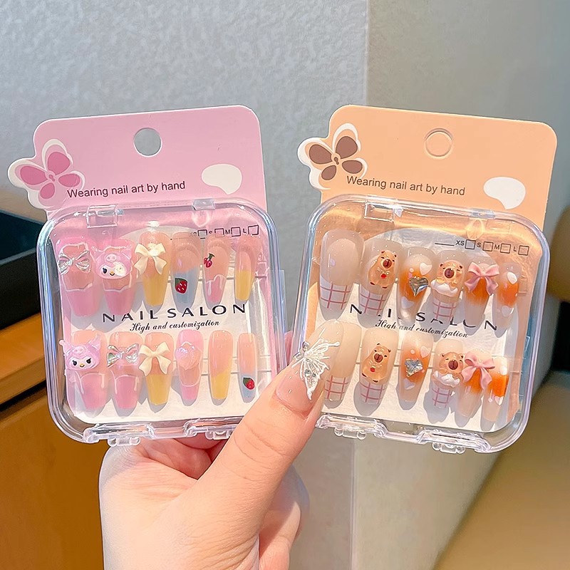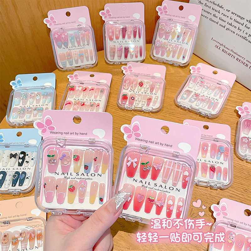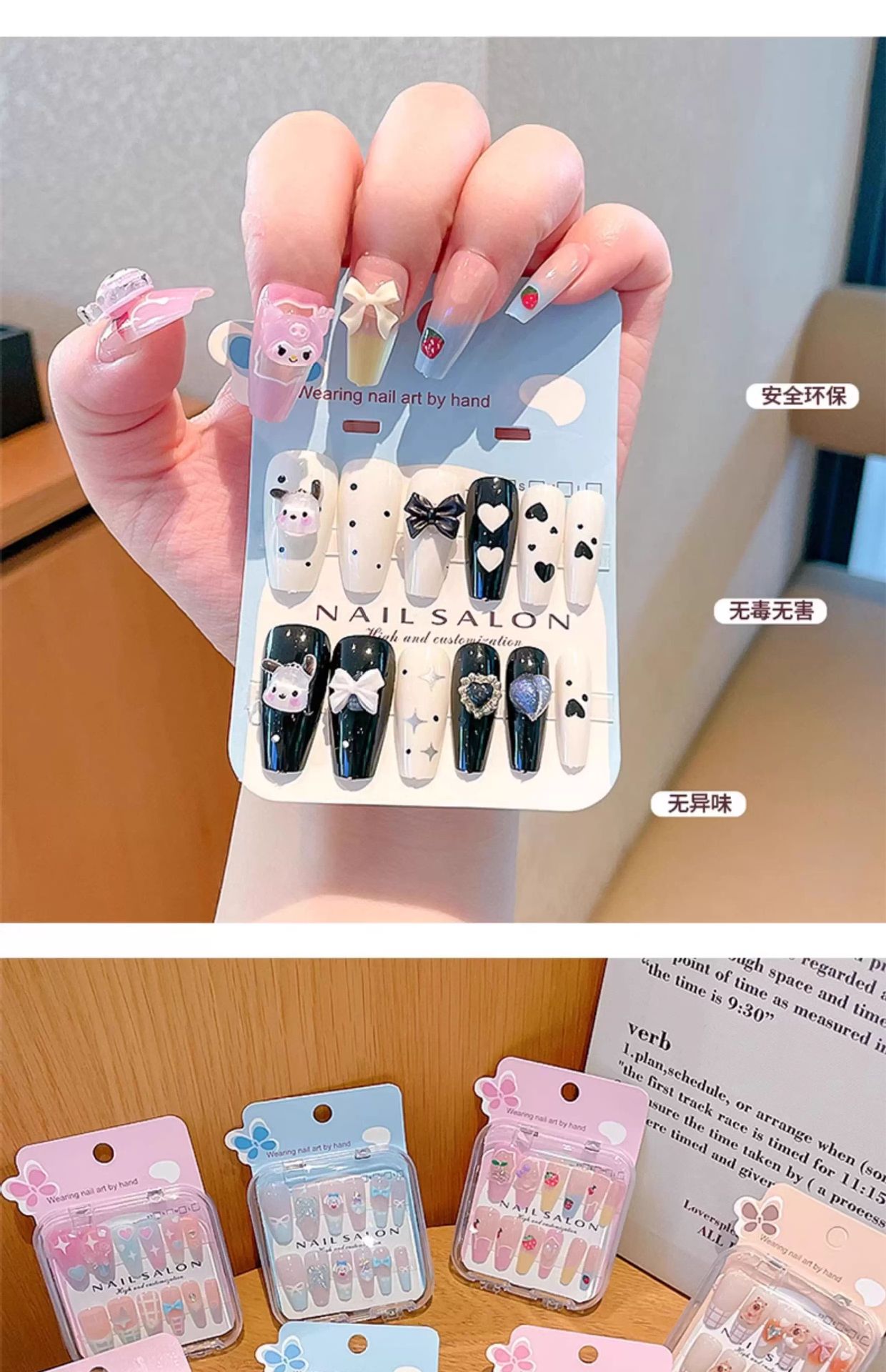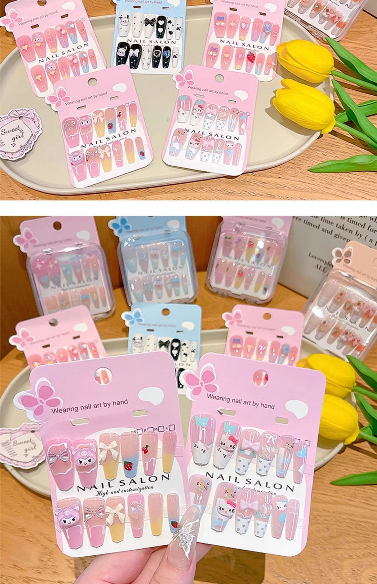 卡通儿童穿戴甲长款显白女童指甲贴2025新款小美甲贴无味拆卸