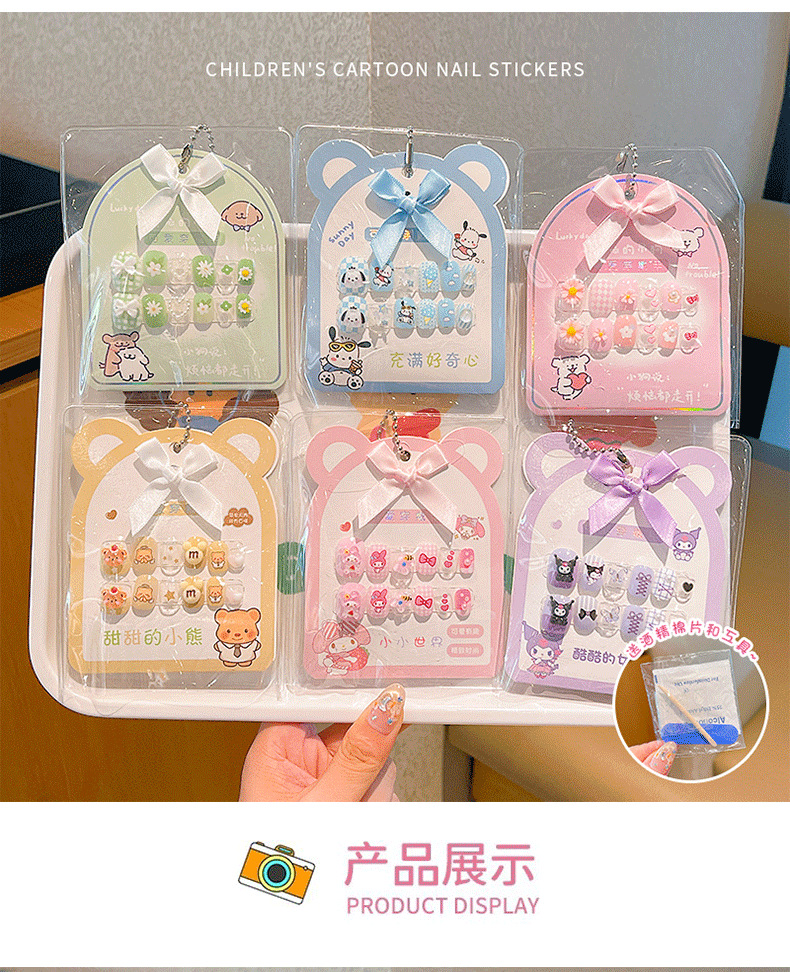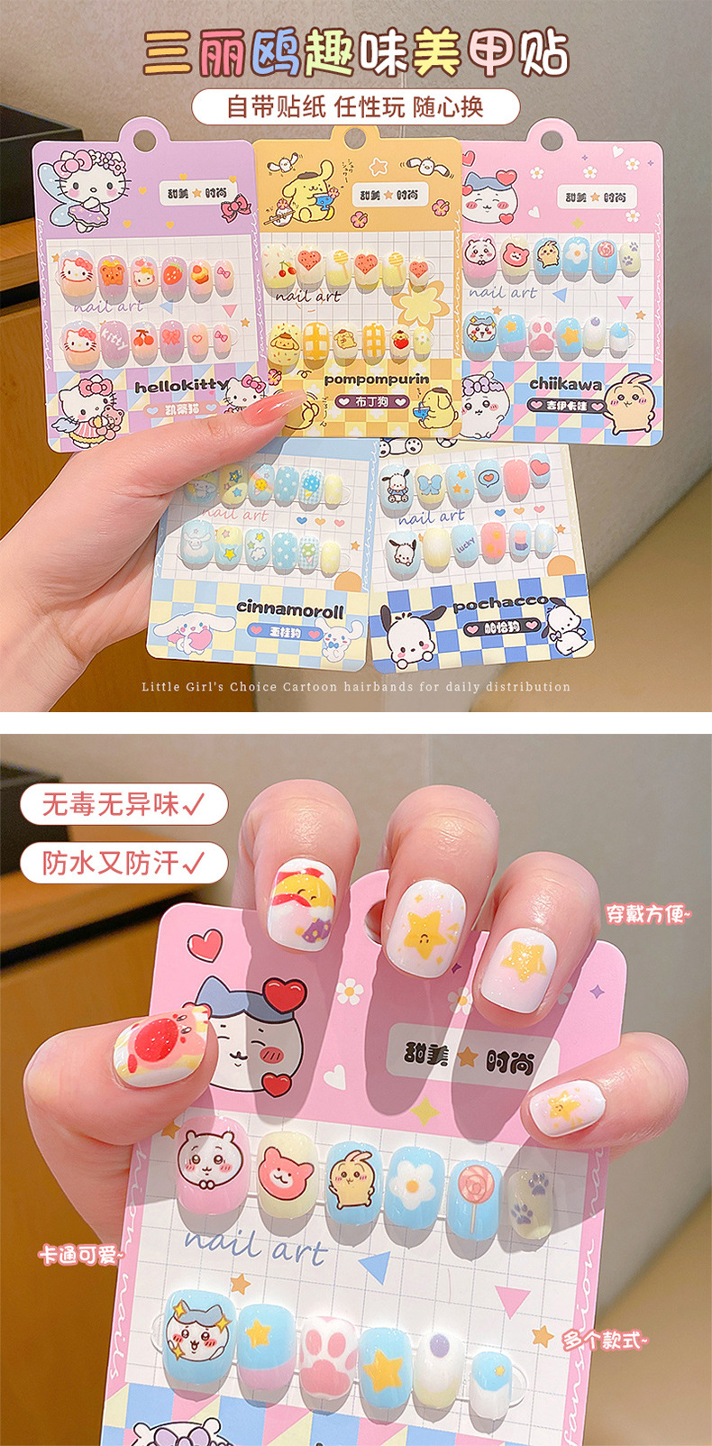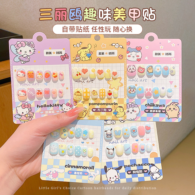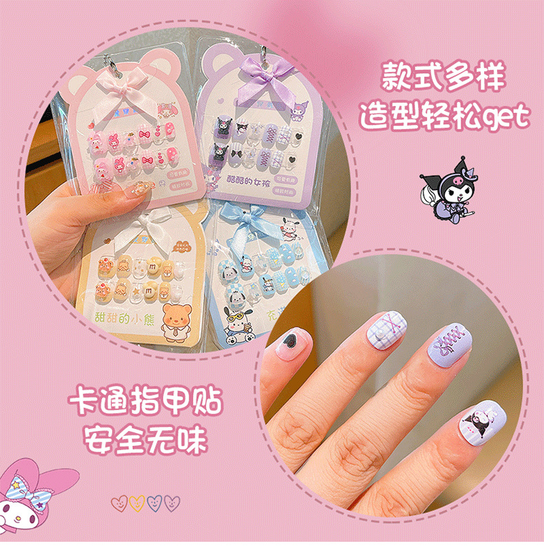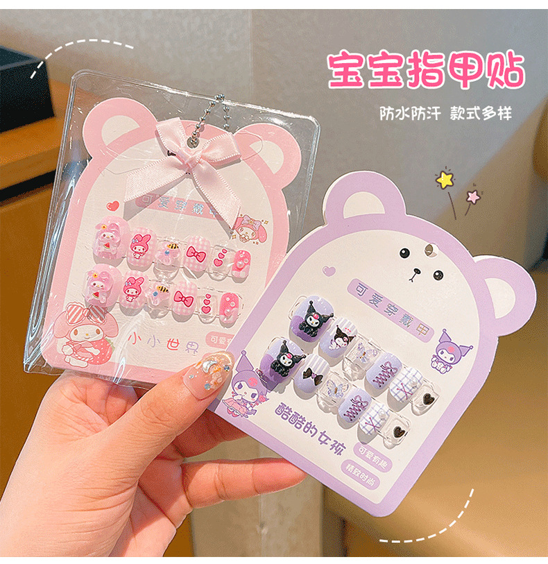 女宝宝卡通指甲贴三丽鸥自粘美甲贴片可爱防水儿童穿戴甲贴画贴纸