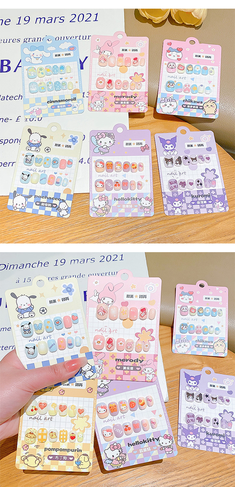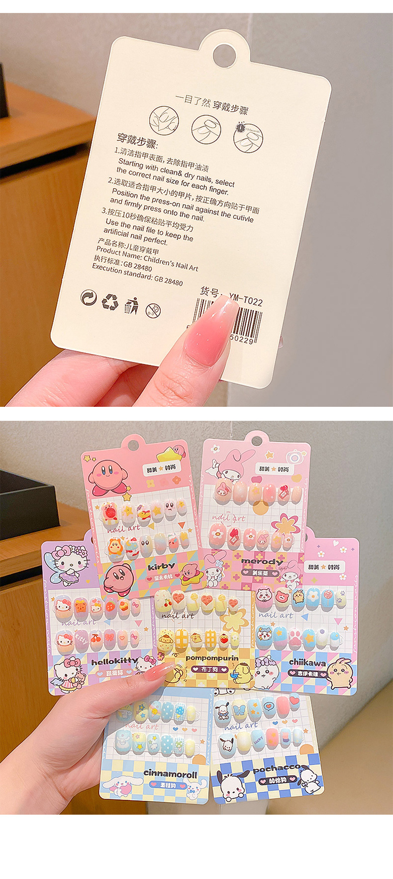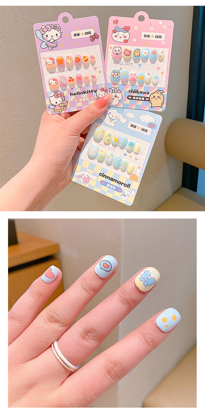 女宝宝卡通指甲贴三丽鸥自粘美甲贴片可爱防水儿童穿戴甲贴画贴纸