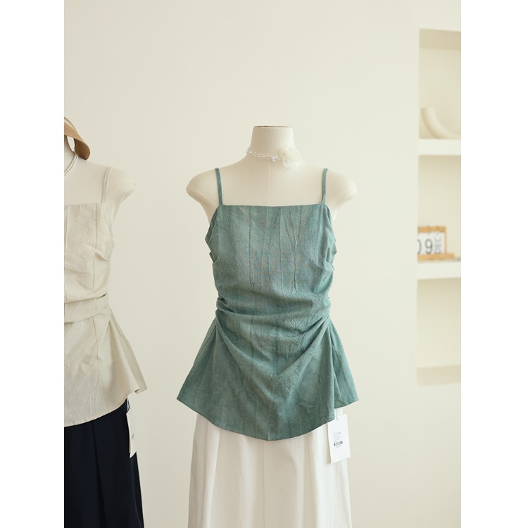 法式复古气质褶皱设计吊带背心女夏季新款感别致绝美上衣