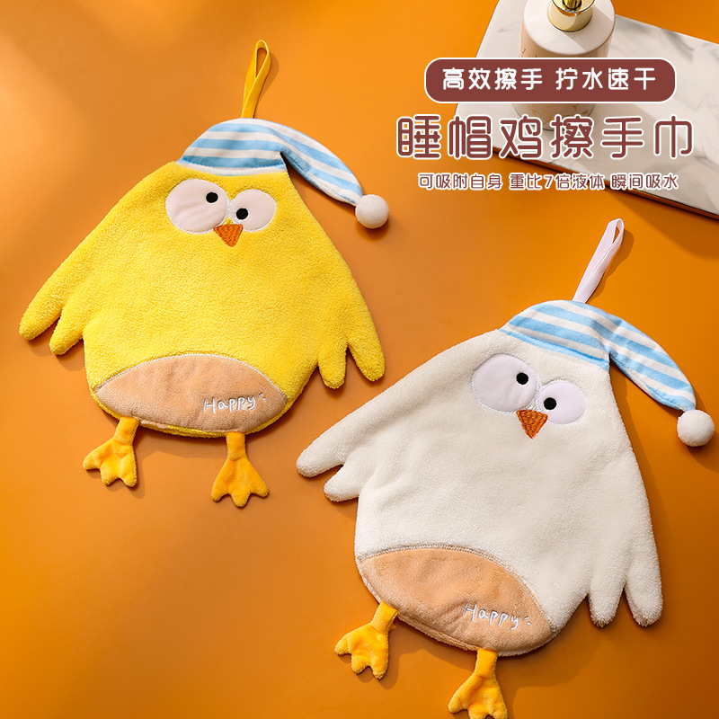 儿童可爱吸水擦手巾玩偶毛巾搞怪挂式厨房擦手速干抹布珊瑚绒手帕